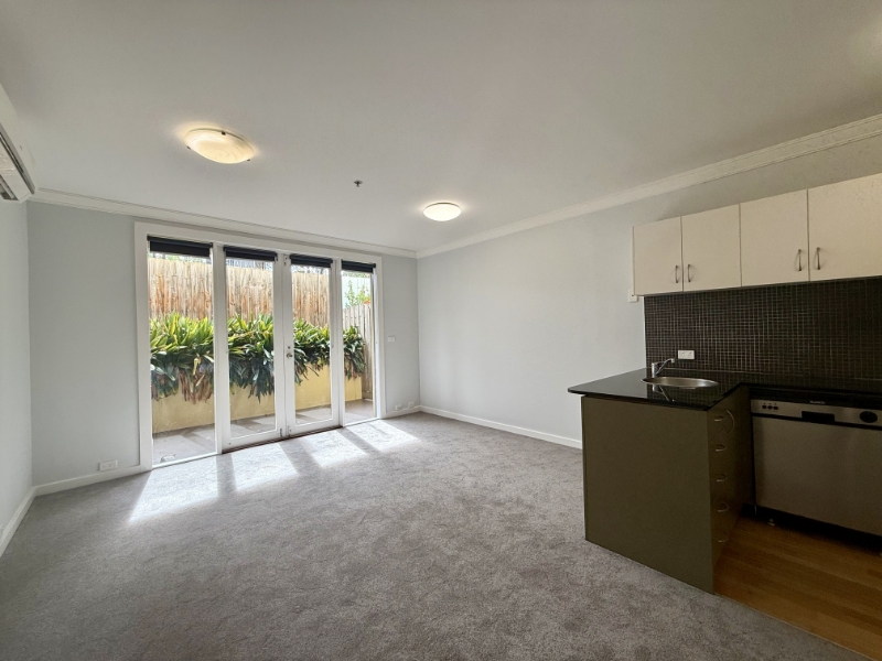 In a low-level building with a stylish façade, this ground floor 1 bedroom apartment is situated in prime location with walking distance to public transport - Glen Huntly Train station, Trams to Elsternwick & Carnegie & local amenities such as Woolworths and cafes/ restaurants. The apartment has been freshly painted and features new plush carpet throughout. Featuring a generous sized open plan living/meals area with split system heating/cooling and a study nook with built in desk. Living room opens to French doors revealing a supremely private undercover paved courtyard, perfect for year-round alfresco entertaining. The contemporary kitchen features black granite benchtops, stainless steel Blanco appliances, ample storage space, gas stovetop and dishwasher. Double bedroom with wall – wall built in robes, electric panel heater and doors which open to a sunny communal courtyard. Central bathroom with a walk-in shower, heat lights and an adjacent Euro laundry. Additional features include one secure basement car spot with convenient lift access, communal bike storage and secure access via fob/intercom.
