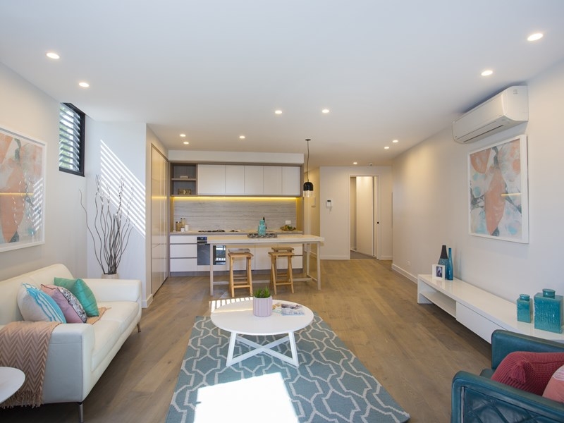 Spectacular development in notable Caulfield North designed by famed architects SJB. References to the Art Deco era are contemporized with a green star energy rating, timber cladding, glass and masonry facades. Enjoy landscaped gardens, a tranquil communal BBQ and sitting area as well as a sparkling lap pool, the perfect respite on long summer days. Apartment 216 has been freshly painted throughout, boasts engineered oak floors in the open-plan living and dining space that flows out to a paved undercover balcony. The superb streamlined kitchen maximizes space with an integrated refrigerator, Euro laundry, long countertops and mobile island bench/dining table. Smeg appliances, black tapware, dishwasher, pendant light and open shelving add to the luxurious fittings and finishes of this outstanding apartment. The master suite features large BIR, deluxe ensuite whilst bedrooms two and three include BIR and loads of natural light, serviced by a second sumptuous bathroom. Underground carparking and storage cage for two cars, split system heating/cooling, secure entry and a location moments from an array of transport options, shopping, dining and parklands…216 at 1 Wilks St is incomparable!
