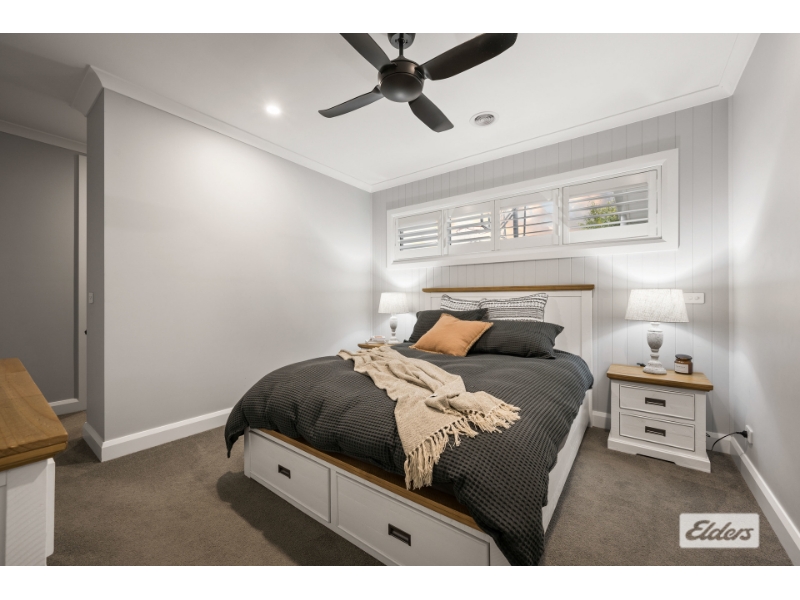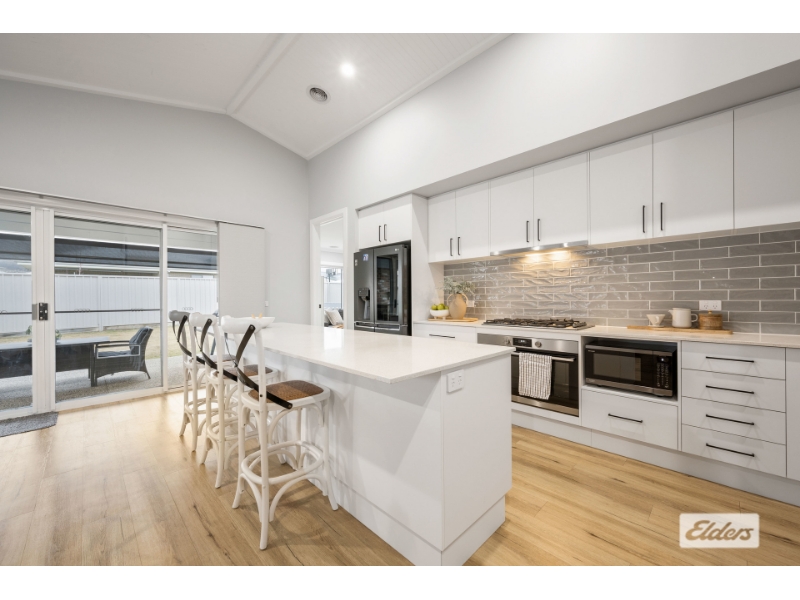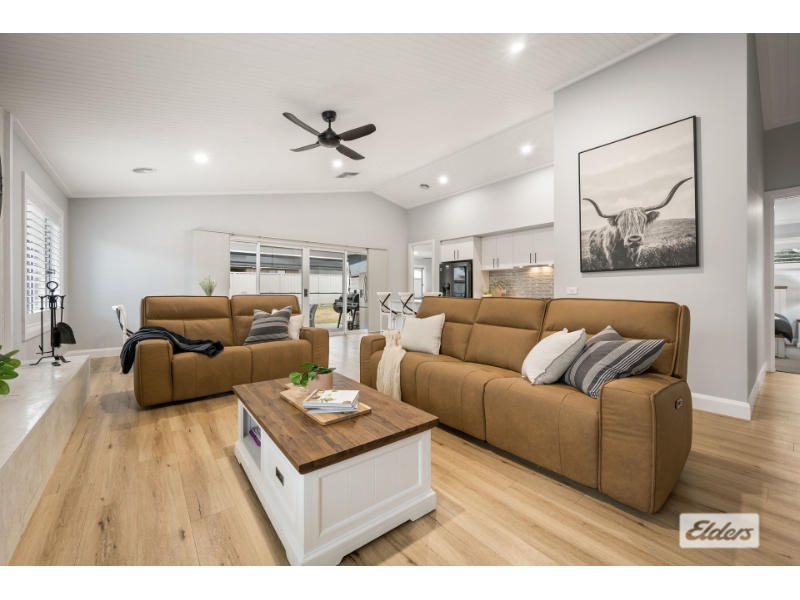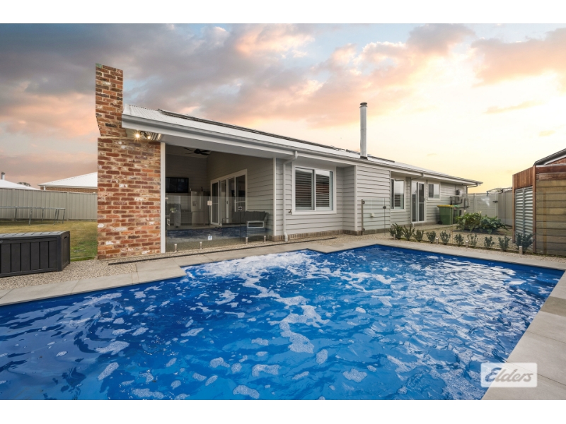 This stunning home built by GJ Gardner exudes elegance with its Hamptons styling and thoughtful design, making it the perfect sanctuary for you and your family. Boasting three generously-sized bedrooms, the master suite is a true retreat with a walk-through robe and a luxurious ensuite featuring a double vanity, large shower, toilet, and floor-to-ceiling tiling in serene neutral grey tones. The additional bedrooms are equally inviting, each with built-in robes and access to a stylish family bathroom complete with a deep bath, wall-hung vanity, separate shower and floor to ceiling grey subway tiling. The modern kitchen is a chef's delight, overlooking a spacious living and dining area with a raked ceiling that enhances the sense of space and light. The kitchen itself is equipped with stone benchtops, an island bench with power, a large gas cooktop, an electric under-bench oven, and a cleverly designed open pantry. A second living area provides a comfortable space for relaxing, entertaining or cosy tv nights. Comfort is paramount in this home, with ducted evaporative cooling, ducted gas heating, and a combustion heater set in a feature mantle in the family room while matte black ceiling fans are thoughtfully placed throughout to ensure year-round comfort. Step outside and enjoy the ultimate entertaining space, complete with an outdoor fireplace and zip track blinds to protect you from the elements enhanced with an inground swimming pool heated with a heat pump and spa and modern glass fencing that promises endless all year fun. A double lock-up garage with remote access and solar panels to the roof provide convenience and energy efficiency.