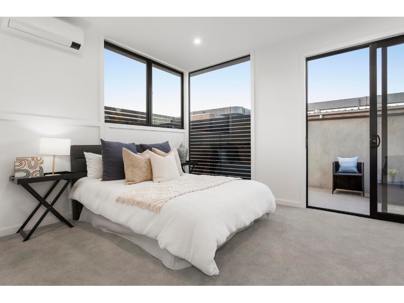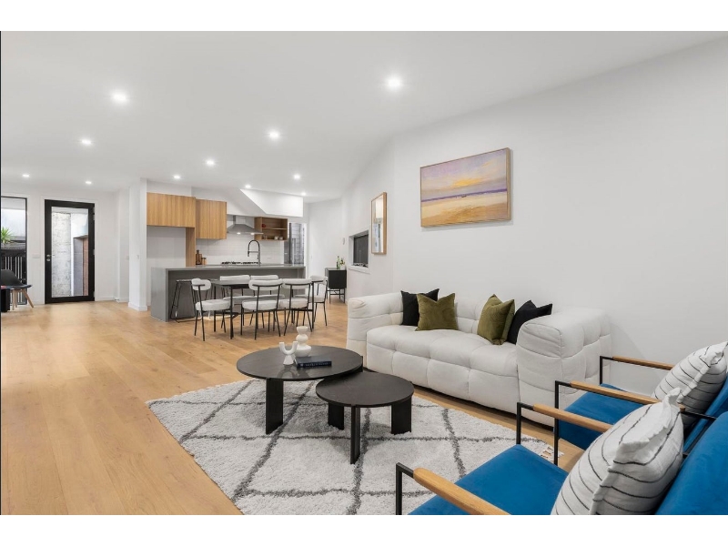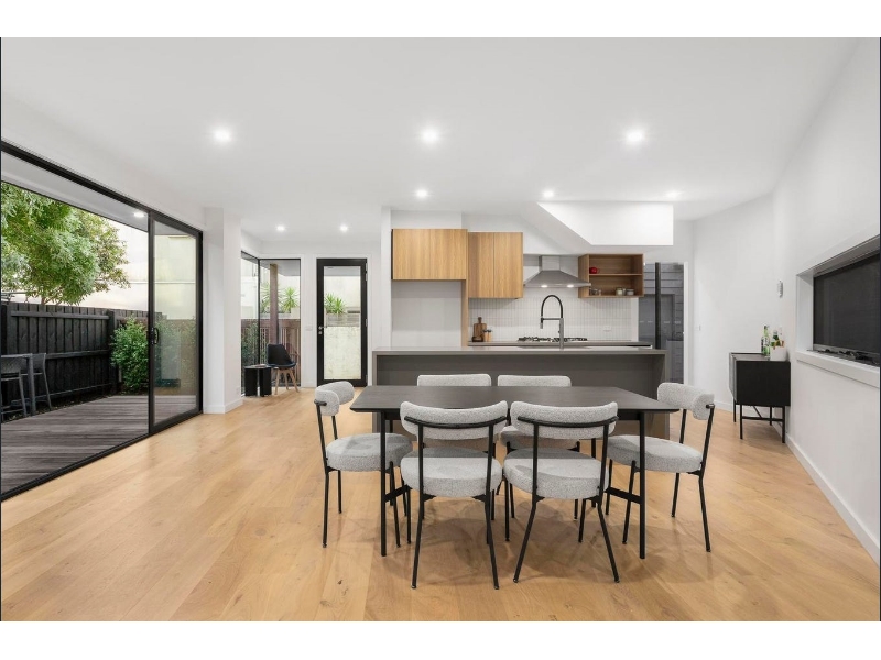 A brilliant combination of space, light and attention to detail dominates this brand new two storey townhouse is situated privately, securely and quietly tucked away from High Street. Bathed in an abundance of natural light from expansive windows and constructed with a commitment to quality resulting in a stylish contemporary interior with high ceilings over the two levels. The essence of stylish and low maintenance living is on show in this superbly appointed home with the entrance foyer including a study alcove and wide oak flooring flowing through an expansive living and dining room, incorporating a sleek stone and premium Bosch equipped kitchen. All opening through floor-to ceiling sliding doors to a north west facing deck and courtyard garden - providing ideal options for indoor/outdoor relaxation, dining or entertaining. Additional accommodation includes a powder room and laundry plus three upstairs carpeted bedrooms, the main with a sky lit ensuite, WIR and sun-drenched northern balcony - perfect for a morning coffee or evening drink; and a sky lit family bathroom. Other appointments include video intercom, remote skylight in living room, R/C air conditioners on both levels, fully-tiled bathrooms, high quality black fittings, ample storage, remote double garage with direct internal and rear lane access. This stylish townhouse has both vehicle and pedestrian access from Disraeli Street, as well direct pedestrian access from High Street and is conveniently situated moments from the Harp or Kew Junction shopping including Leos Fine Foods or Toscano's, cafes and restaurants, Kew Recreation Centre, Eglinton Reserve or Victoria Park; plus transport options and easy access to an excellent selection of schools including the prestige private school precinct, the CBD, Yarra Valley or Mornington Peninsula via the Eastern Freeway. Delivering a great lifestyle for young professionals, families or a lock up and leave home for retirees.