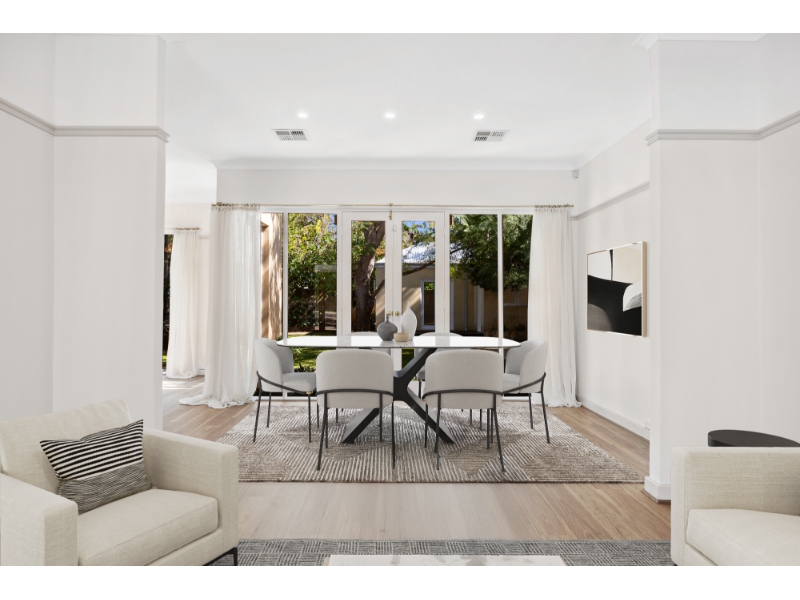 Welcome to lovely 17 Myera Street, Swanbourne... put your bags down, this stunning home is ready to move into! Nestled among beautiful trees and just a leisurely stroll to the beach, this charming war cottage has undergone a stunning transformation into a chic family home. With its rich history and picturesque surroundings, it offers a perfect blend of nostalgia and modern living. Boasting 4 bedrooms (two with ensuites), 3 bathrooms, 4 WCs, separate living, dining and a spacious lounge room, this designer layout also features a lush green back yard with it's own designer Studio! The heart of the home is the spacious kitchen, designed for both functionality and style. Equipped with state-of-the-art appliances, ample counter space, it's own Chef's larder & unique spice draw, it's perfect for family gatherings and entertaining friends. The adjoining dining area, with its chic decor creates an inviting space for shared meals and laughter. The modern Studio features 2 large rooms complete with a sink... perfect as a games room with a bar or otherwise a quiet retreat for the artist who has a flare! Perfectly situated in one of Swanbourne's most sought-after neighborhoods, and just a stroll to local shops, cafes, schools, with a nearby walk/cycle way which runs alongside lovely Lake Claremont, this property offers the ideal blend of comfort & healthy living. Property Features: - Spacious Bedrooms: Four generously sized bedrooms, with two featuring their own ensuites for added privacy and convenience. - Modern Bathrooms: Enjoy the luxury of three well-appointed bathrooms, ensuring that everyone has their own space to unwind and refresh. - Bright and Airy Living Spaces: The home boasts an inviting entry with it's star quality skylight, and a layout with plenty of natural light. - Unique Studio: Two large rooms for entertaining or creating your own designs. - Lush front and back yards surrounded by nature, with trees, fresh garden beds, lots of lawn and an outdoor patio. - Solar Panels. - Ducted Air Conditioning. - Bore Reticulation. - Open Parking: With three open parking spaces available, you'll never have to worry about finding a spot for your vehicles. - Prime Location: Situated in the heart of Swanbourne, you'll be just moments away from local parks, schools, shops, and the stunning beaches that this vibrant community has to offer. This property is ideal for families seeking a comfortable and stylish home in a fantastic, convenient location. For more information or to schedule a viewing, please contact us. This stunning home won't last long on the market, so act quickly to secure your new lifestyle at 17 Myera Street! * Please note: The furniture images used in this are virtual images, and purely for home styling.