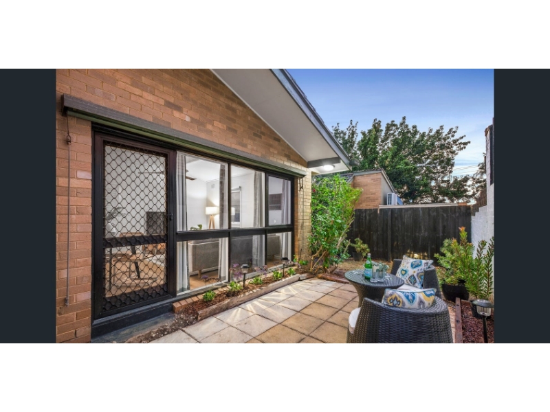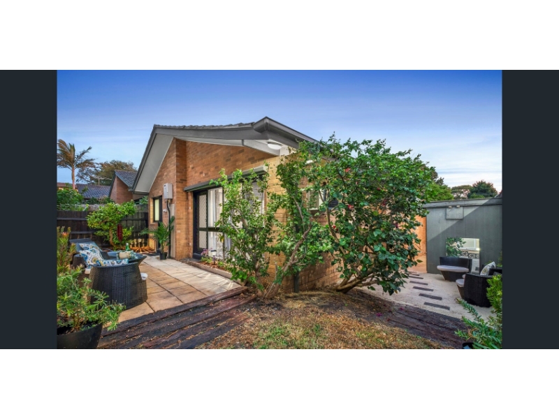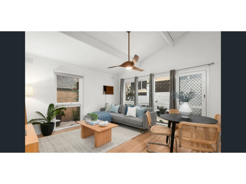 Experience the ease of low-maintenance living with the timeless appeal of this sun-drenched unit, showcasing striking Modernist style from its original c.1975 design. Tucked within the heart of a boutique group created by a renowned modernist architect, this two-bedroom home is full of natural light and architectural flair. A dramatic vaulted ceiling soars above the north-facing living area, while clerestory windows in the bathroom and expansive panes throughout ensure sunlight at every turn. Beautifully presented with updates that respect the home’s heritage, the property features two generously sized bedrooms with built-in robes, a well-planned bathroom with a separate WC, and a sleek monochrome kitchen with stainless-steel Bosch appliances, including a dishwasher. Comfort is assured year-round with ducted heating, reverse-cycle air conditioning, a feature designer ceiling fan in the living area, and retractable fan-lights in both bedrooms. Surrounded by sunny private gardens offering space to entertain or unwind, this home also includes direct access to an easy-entry garage via a wide driveway. Perfectly positioned for a relaxed beachside lifestyle, you’ll be just three blocks from Hampton Street’s vibrant café precinct and train station, a short stroll to the beach and local primary school, and only 28 minutes by rail to the CBD. This is a rare chance to lease a unique, architect-designed home in a tightly held setting.