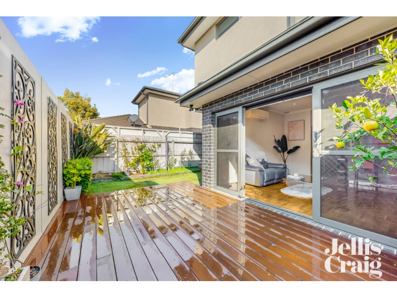 Perfectly positioned in one of Glenroy’s most sought-after pockets, this beautifully appointed townhouse offers the ultimate blend of comfort, convenience and low-maintenance living. Just a short stroll from local parklands, shops, bus stops and Glenroy train station, and with easy access to major arterials, the CBD and Melbourne Airport, this residence makes everyday living a breeze. Step inside to discover a stylish interior featuring two spacious bedrooms with built-in robes, a sleek central bathroom with a full-size bathtub, and the added convenience of a downstairs powder room. The open-plan kitchen is a standout, complete with stone benchtops, gas appliances, a dishwasher, and a breakfast bar, all flowing seamlessly into the meals area and out to a sun-filled decked courtyard—perfect for entertaining. An additional front living zone offers flexibility for a home office, formal dining or relaxed retreat, while timber floors, high ceilings, and split system heating/cooling throughout add a touch of luxury. Crimsafe doors at the front and rear, extended fencing for added privacy, and an established garden enhance the sense of security and serenity. A remote single garage with euro laundry, extra off-street parking, and plenty of internal storage, including under-stair space, complete the picture. This pet-friendly home delivers exceptional lifestyle appeal in one of Melbourne’s fastest-growing suburbs—less than 15km from the CBD. NB: As this property may be located in an area where car parking is at a premium, please make your own enquiries with the municipal council to determine if a resident parking permit is required for on street car parking.