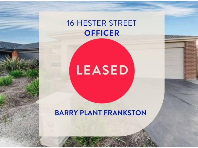 Immaculately Maintained & Presented Like New – Stylish, Low-Maintenance Living at 16 Hester Street, Officer Fastidiously cared for and presented to impress, this beautifully maintained home offers comfort, convenience, and modern living in a quiet, family-friendly location. Features include - Ensuite to Master Bedroom - Alfresco with a sunny aspect and garden views - Modern Kitchen with dishwasher - Split system in lounge area - Ducted heating throughout - Garage with internal access - Secured backyard with fencing - Carpeted bedrooms and tiled Lounge area and kitchen. Located just minutes from local schools, shops, and public transport, this home offers unbeatable convenience. A wide selection of primary schools and childcare centres are within a 2km radius, making it an ideal choice for families. EXCLUSIVELY OFFERED FOR RENT BY BARRY PLANT FRANKSTON. Disclaimer: In preparing this information, Barry Plant Frankston has relied in good faith upon information provided by others & has made all reasonable efforts to ensure that the information is correct. The accuracy of the information provided to you (whether written or verbal) cannot be guaranteed. If you are considering this property, you must make all enquiries necessary to satisfy yourself that all information is accurate. Please note that inspection times are subject to change without notice, we suggest you check the online marketing/listing on the day. 12 MONTH LEASE TERM OFFERED, unless otherwise specified. For guaranteed access, please arrive at the allocated inspection start time, to avoid disappointment. APPLYING – via REALESTATE.COM.AU *PHOTO ID must be provided before entry