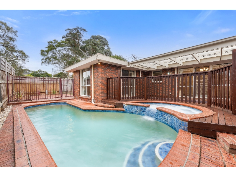 Enjoy the comfort and convenience of this large, beautifully maintained home in a prime Wheelers Hill location! This versatile residence offers five generously sized bedrooms, including a master suite complete with a renovated ensuite, walk-in/built-in robes, and a private dressing room or study area. Two of the three additional bedrooms also feature built-in robes, providing ample storage for the whole family. The home boasts multiple living zones, including a spacious L-shaped lounge, a fully renovated kitchen with stainless steel appliances and abundant cupboard space, and a light-filled meals area. At the front of the home, a large multi-purpose room with its own separate entry is ideal as a home office, studio, or second living space. Additional features include: • Ducted heating and evaporative cooling throughout • Additional split system air conditioning in the main living area • Heated saltwater pool and spa – maintenance included • Backyard with direct access to the neighbouring park/reserve Perfectly located within close proximity to Monash and Eastlink freeways, local shopping centres, schools, and parklands, this well-appointed home offers space, style, and practicality for modern family living. Be quick – this one won't last! Photo ID required at all open inspections.