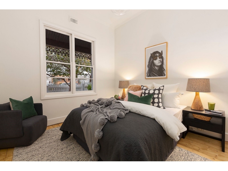 Nestled moments away from Port Phillip Bay and Albert Park Village, this charming brick Victorian home offers not just a desirable location, but a wealth of hidden treasures within. Step inside to discover a spacious interior with polished timber floors flowing throughout. Two expansive bedrooms, complete with floor-to-ceiling built-in robes (not pictured), ensure ample storage space, while a living room with split system for all year round comfort and a well-appointed kitchen with dishwasher complete the picture. Adjacent to the kitchen, you'll find a modern bathroom and a European laundry with a separate wash trough. The dining space is bathed in natural light, extending effortlessly to a private northern courtyard boasting a generous storage shed and laneway access. This traditional Victorian terrace is sure to tick every box. Be quick to inspect! ** Please note window furnishings installed post photos **
