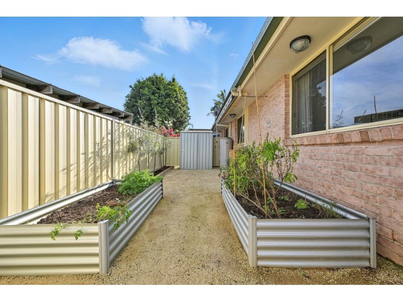 Charming and full of character, this brick villa is framed by a classic picket fence, lush front yard and vibrant garden beds creating a warm and inviting first impression. Inside, the spacious, carpeted living area is filled with natural light, thanks to large windows and is kept comfortable year round with ceiling fans. The well appointed kitchen includes a dishwasher and breakfast bar, flowing seamlessly into the rest of the home. A standout feature is the large, modern bathroom, complete with a generous shower, deep bathtub and a spacious vanity offering ample storage. All carpeted bedrooms include built-in robes and ceiling fans, with the master bedroom also featuring a split system air conditioner for added comfort. The functional laundry includes convenient, external access. Step outside where you will find a veggie patch and garden shed, perfect for the green thumb. This home combines modern convenience with classic charm and is ideal for those who value indoor comfort and outdoor lifestyle. Features Included: -Brick home -Dishwasher -Natural light -Ceiling fans throughout -Large modern bathroom with a tub -Built-in robes -Master bedroom with a split system air conditioning and ceiling fan -Laundry room with external access -Garden beds, veggie patch and garden shed