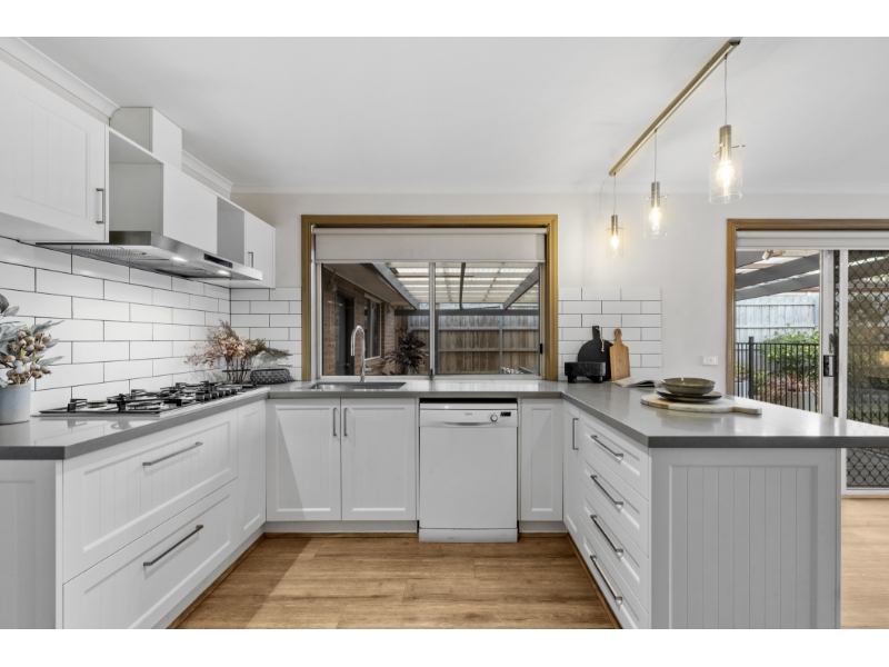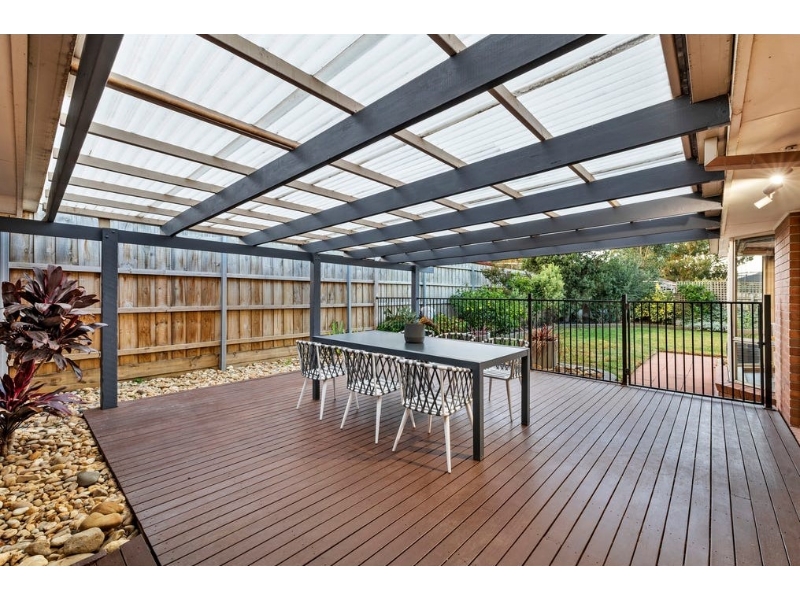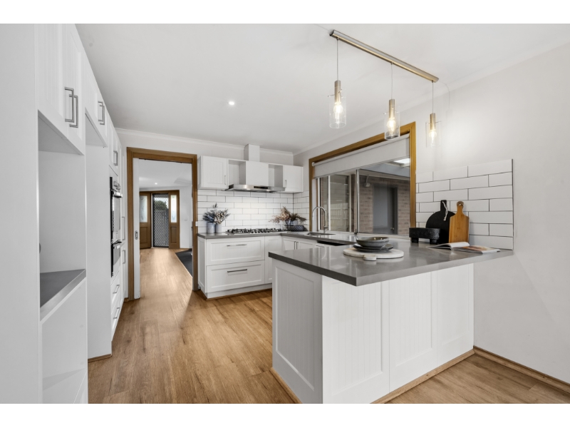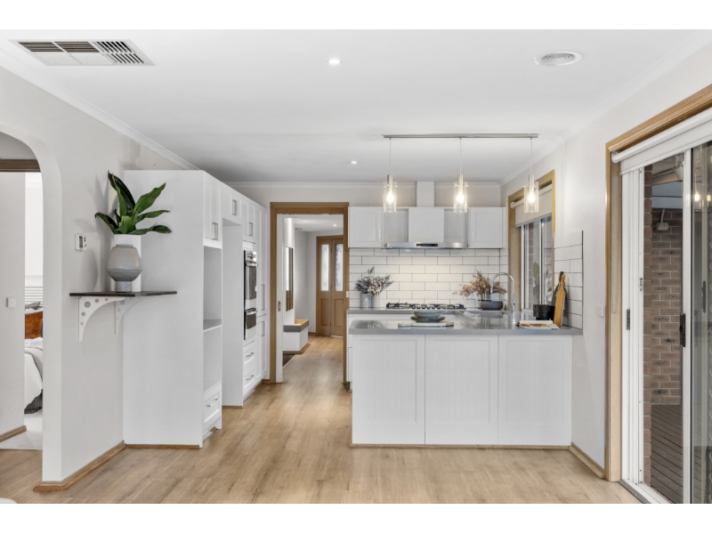 Brimming with style, space, and undeniable family appeal, this beautifully renovated four-bedroom, two-bathroom home offers an exceptional lifestyle of comfort, convenience, and effortless entertaining. Set on a generous 609sqm (approx) in one of Aspendale Gardens' most desirable pockets, it's the perfect haven for growing families and avid entertainers! A welcoming entry behind a classic picket fence reveals a home that radiates warmth and style. Awash with natural light, the refined interiors feature sleek timber-look flooring and an intelligent layout with multiple living zones. A spacious formal lounge and dining room provide a sophisticated setting for hosting, while the expansive open-plan living and meals area is perfect for relaxed family time. At the heart of the home, a striking Caesarstone kitchen takes centre stage, equipped with a 900mm gas cooktop and oven, dishwasher, abundant storage, and picturesque views of the serene backyard. Sliding glass doors connect seamlessly to a generous alfresco deck, creating an idyllic indoor-outdoor flow ideal for year-round entertaining. Beyond, ample lawns offer a secure space for kids and pets to play freely. Thoughtfully zoned for privacy, the main suite is a tranquil retreat featuring built-in robes and a sleek, renovated ensuite. Three additional bedrooms are serviced by a chic central bathroom with a deep soaking tub and separate toilet - creating an ideal children's wing for peace. Additional features include ducted heating, evaporative cooling, roller blinds, a full-sized laundry with external access, a garden shed, and a double garage with rear access. Positioned for the ultimate lifestyle, this impeccable home is just a few doors from Branagan Drive Reserve, a short walk to Aspendale Gardens Shopping Centre and Primary School, and moments from the Wetlands Reserve, newly upgraded train stations, and the beach. Surrounded by leading schools, including Haileybury, Lighthouse Christian College, and Parkdale Secondary, it offers the perfect blend of family functionality and luxury living.