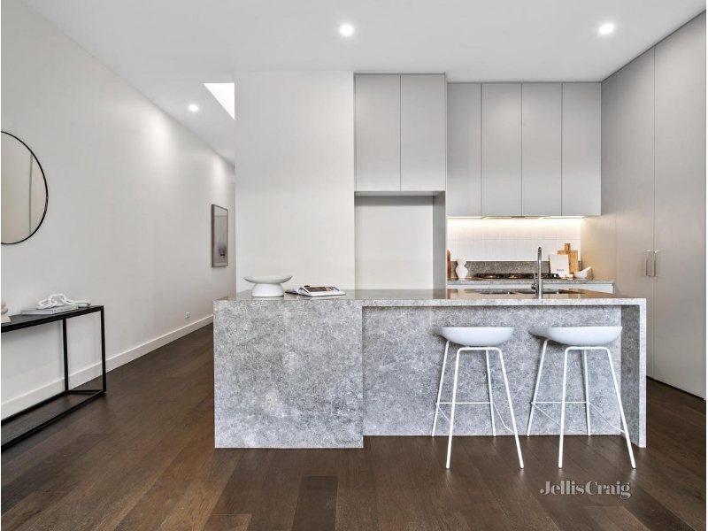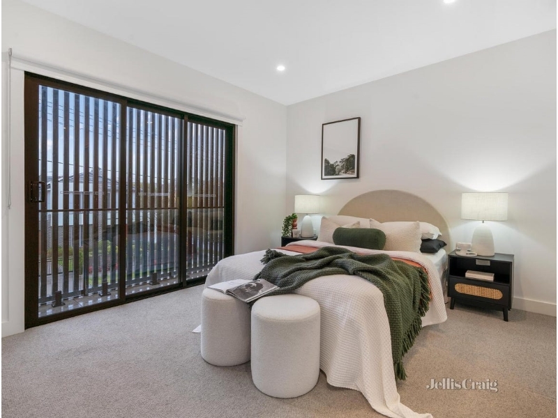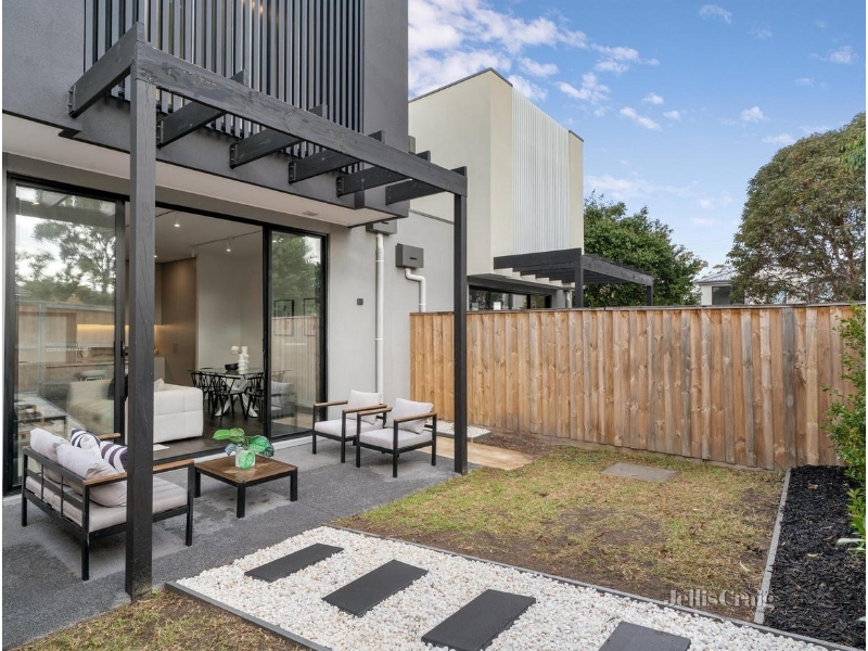 A striking combination of cutting-edge design and low maintenance streamlined landscaping deliver a near-new home of luxurious standards. Perfectly matched for those seeking functionality and privacy in a premier lifestyle location merely minutes to all your needs. Oak engineered floors and loop pile carpet enhance the designer palette. Open-plan living and dining with a dramatic 3m ceiling height showcases family living at its best, and a plush integrated banquette creates a sense of comforting space. Anchored by a stunning kitchen with an expansive Tundra stone, island waterfall benchtop. Fitted with a 900mm Westinghouse oven, gas cooktop and Asko dishwasher. Full height soft-close cupboards and double corner pantries provide extra-long term storage options. Stacker doors open outside to reveal a private, low maintenance court garden with direct back gate entry to a rear court for ease of access. A stunning light well and upper stairway void create an interesting light filled aesthetic. Three spacious bedrooms and two designer bathrooms with travertine-style tiles offer the home contemporary comforts that buyers seek. A main bathroom delivers a rainfall shower over bath and the master suite is secluded in its own section with a stylish ensuite and wall to wall built-in robes. Additionally, this domain appreciates the extra flow of fresh air with elevated screened sliding doors. Further enhanced by a ground level powder room, beautiful neutral toned sheers and blinds, select track lighting and wall sconces, laundry nook, split systems throughout, water tank and internal entry to a single remote garage, with its own driveway and additional parking off street available. Modern, sophisticated and superbly positioned, this home epitomises low maintenance living. Only minutes walk to designer cafes at Village Avenue Shops, and a short bus ride or drive to Bulleen Plaza and Westfield Doncaster, along with Greythorn Road Shops. Close to zoned Templestowe College and Birralee Primary as well as Kew school connections. Within metres of the Eastern Freeway and Koonung Trail for seamless commuting or cycling to the CBD.