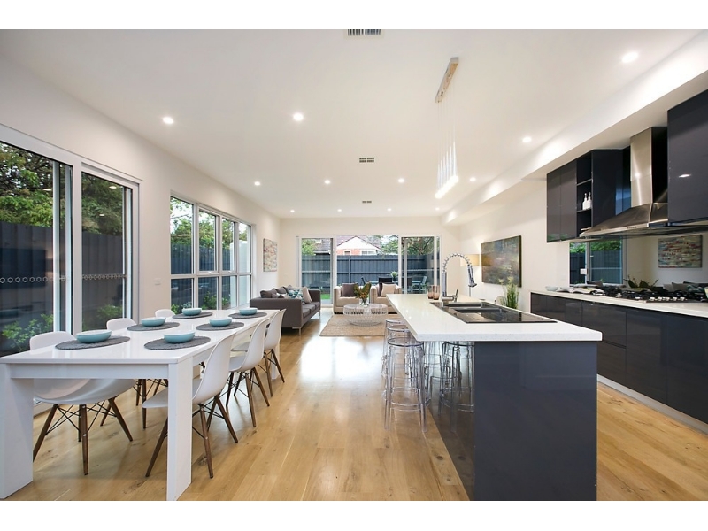 PLEASE NOTE THAT THIS PROPERTY IS UNFURNISHED Positioned in a sought-after parkland pocket, just moments from Basterfield Park, the vibrant Highett village, and Hampton’s beautiful beaches, this expansive four-bedroom plus home office, 3.5-bathroom residence offers space, style, and a true Bayside lifestyle. Designed with generous proportions and premium finishes, the home features a state-of-the-art Blanco kitchen with stone benchtops, mirrored splash back, walk-in pantry, and wide board timber flooring. Every fully tiled bathroom includes frameless shower screens and concealed cisterns, while double-glazed windows, zoned ducted heating/cooling, and a full security system ensure year-round comfort and peace of mind. The thoughtful layout offers vast open-plan living, extra-high ceilings, and a choice of main suites upstairs or down—both with luxe ensuites and the upstairs suite boasting a bespoke walk-through robe. A fitted home office adds work-from-home flexibility. Complete with street-front appeal and set in a location that balances convenience and coastal charm, this is a home that delivers both lifestyle and long-term value. Welcome home