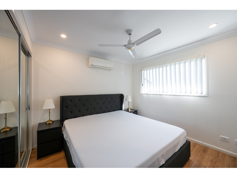 Perfectly positioned in the sought-after Emerald Park complex, this modern three-bedroom townhome offers the perfect blend of space, style, and convenience. With an oversized backyard, this home is ideal for families, pet owners, or anyone who loves outdoor living. Step inside to a bright open-plan layout with a spacious living and dining area that flows seamlessly to a covered alfresco space, perfect for year-round entertaining. The sleek Caesarstone kitchen is equipped with quality appliances including electric cooktop, oven, and dishwasher, all overlooking the private backyard. Upstairs, you'll find three generous bedrooms with built-in wardrobes, including a master suite with ensuite. Freshly upgraded with hybrid flooring on the stairs and upstairs, the home feels modern and low-maintenance throughout. A stylish family bathroom with separate bath and shower, plus a handy powder room downstairs, adds to the home's functionality. This low-maintenance home comes complete with air conditioning, security screens, and a remote lock-up garage with internal access. Features you'll love: -Modern open-plan living with air conditioning -Stylish kitchen with Caesarstone benchtops & modern appliances -Covered alfresco area, perfect for outdoor dining -Expansive fully fenced backyard – ideal for kids or pets -Three bedrooms with built-ins, master with ensuite -New hybrid flooring to stairs and upstairs -Main bathroom with bath + separate toilet -Downstairs powder room & internal laundry -Secure remote garage + visitor parking in complex Location Highlights: -Quiet, well-maintained complex with a community feel -Easy access to Aspley retail precinct (5 mins) & Westfield Chermside (12 mins -13km to Brisbane CBD -Close to quality public & private schools -Public transport within walking distance -Albany Creek State School & Aspley State High School catchments