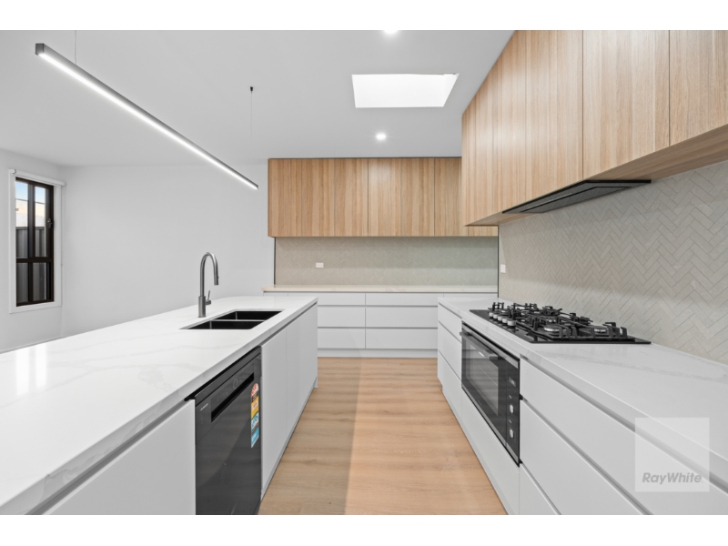Be the first to call this brand-new, beautifully built home your own, nestled in a vibrant and fast-growing part of Craigieburn. Designed with comfort and convenience in mind, this contemporary residence is packed with high-end inclusions-from soaring 2.7m ceilings to a crisp, neutral colour palette that sets the perfect canvas for your personal style. The thoughtfully crafted floor plan features four spacious bedrooms, including a sun-filled master suite with walk-in robe and sleek ensuite, plus a second bedroom with its own private ensuite-ideal for guests or extended family. Both the main bathroom and ensuites are appointed with luxurious frameless showers, full-height tiling, stone-topped vanities, and elegant brushed tapware for a modern, sophisticated finish. At the heart of the home, the open-plan living and dining area flows effortlessly to a private paved courtyard and low-maintenance garden-ideal for relaxing or entertaining. The well-equipped laundry offers external access and added convenience. The stylish kitchen is a showstopper, featuring stone benchtops, an island breakfast bar, quality stainless steel 900mm oven and gas cooktop, a double-door fridge cavity, and ample storage to keep things clutter-free. Extra features include a large linen closet, premium flooring throughout, LED lighting, touch-light mirrors, a secure keypad entry system, ducted heating and refrigerated cooling, video intercom, alarm system, and a double garage with internal access. Moments from parks, playgrounds, quality schools and childcare, shopping centres, and major arterial roads.