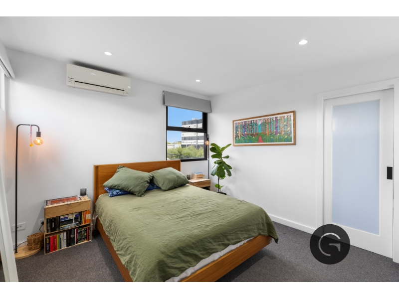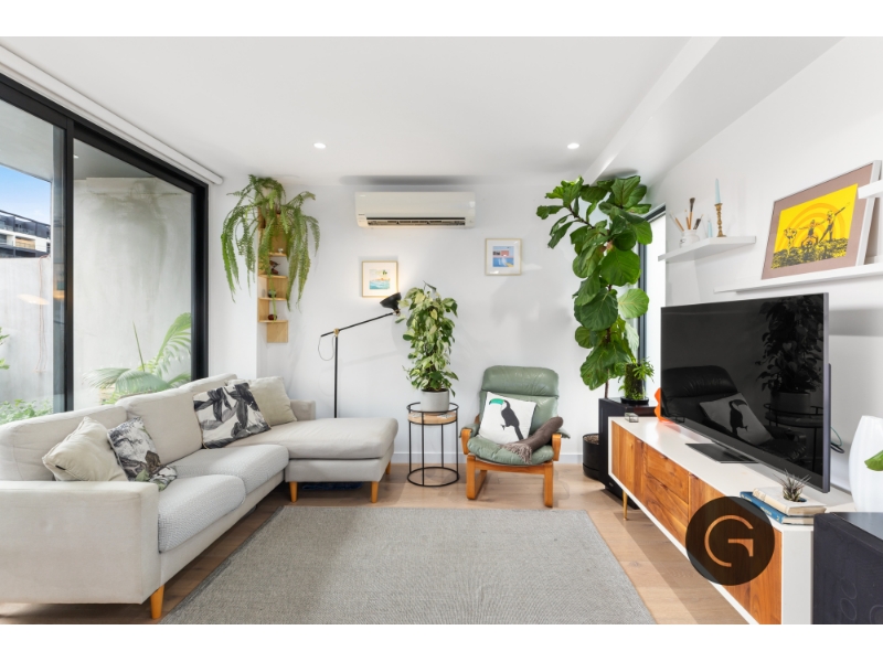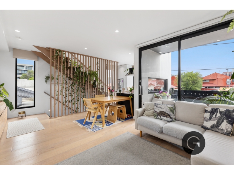 Nestled in the heart of Footscray, this stylish three-level townhouse offers modern living with a perfect balance of space, comfort and convenience. The ground floor features a well-sized bedroom with built-in-robes, a sleek modernly designed bathroom, and a private courtyard. Additionally, this level holds access to your secure garage space. The first floor is designed for effortless entertaining, boasting a light-filled open-plan living and dining area that extends to a private balcony. The well-appointed kitchen offers a sleek, contemporary design which features integrated appliances, ample storage and bench space making it an ideal for those that like to cook and entertain. The top-floor master retreat is a true sanctuary, complete with a walk-in-robe, ensuite and built-in study nook, ideal for those working from home. Additional features include split-system heating and cooling, timber flooring and smart storage solutions throughout. Ideally located moments from cafes, Footscray Market, public transport and the Maribyrnong River, this home offers the perfect blend of lifestyle and convenience
