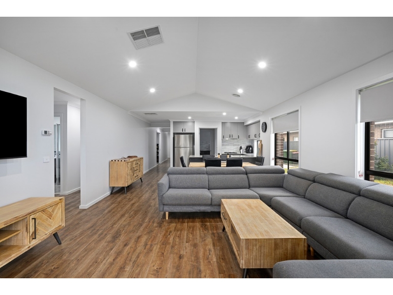 This single-level, modern family home is within easy walking distance of Kinross Woolshed, Thurgoona Plaza, and Brooklyn Fields Family Park The master bedroom, located at the front of the home, features a walk-in robe and ensuite. A separate living area, perfect as a parents' retreat, is positioned away from the main living spaces and can be closed off for added privacy. As you move down the hallway, an open-plan kitchen, dining, and living area greets you. The spacious kitchen is well-equipped with a large walk-in pantry and laundry for added convenience. Three additional bedrooms, all with built-in robes and capable of fitting queen-sized beds, share the family bathroom and a separate toilet. Outside, the alfresco area is ideal for entertaining, with a low-maintenance garden offering ample space for children and pets to play. The home is kept comfortable all year-round with ducted gas heating and ducted evaporative cooling. Additional features include internal access from the remote double garage and side access for convenience. Located close to Thurgoona’s shops, schools, parks, and walking trails, this home offers an excellent lifestyle for families looking for modern living in a vibrant community. Features include: - Four bedrooms, two bathrooms - Formal and informal living areas - Open-plan kitchen with gas cook top - Undercover outdoor entertaining - Double lock up garage - Ducted heating & cooling - Fantastic location close to shopping, schools & eateries TO REGISTER: Please register to ensure you receive notifications of any updates or cancellations. click ‘Book Inspection’ and follow the prompts to register your details for the open home you wish to attend. Alternatively, click "Get In Touch" or "Enquire" on REA and complete your details to stay updated on this property. DISCLAIMER: Whilst every care is taken in the preparation of the information contained in this marketing, Stean Nicholls will not be held liable for any errors in typing or information. All interested parties should rely upon their own enquiries in order to determine whether or not this information is in fact accurate
