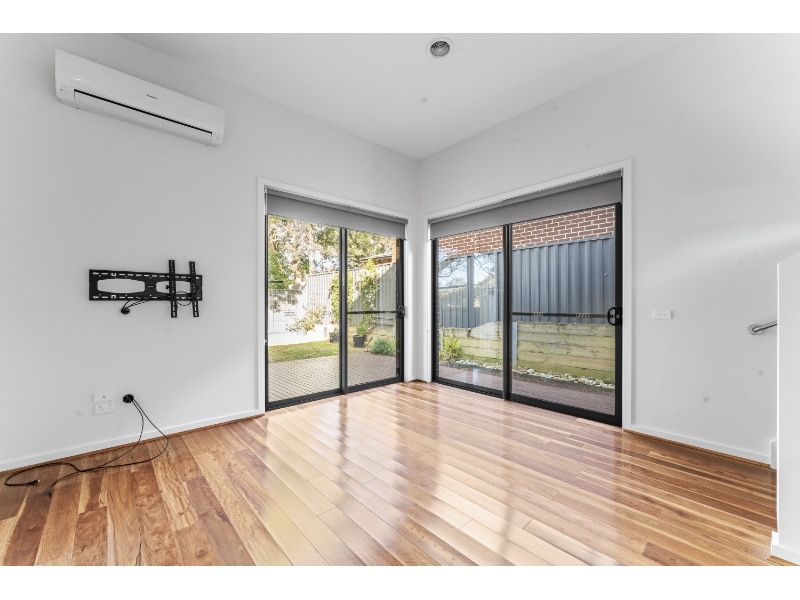Jellis Craig Monash proudly presents this modern 4-bedroom, 3-bathroom townhouse, perfectly designed for contemporary family living within the highly sought-after Glen Waverley Secondary College catchment. Ideally located just moments from Syndal Station and shops, Waverley Private Hospital, Huntingtower School, Wesley College, and local parklands. Consisting of: • Ground-floor bedroom with a walk-in robe and access to a full bathroom, ideal for guests or extended family • Three upstairs bedrooms, including a master suite with an ensuite, plus two further bedrooms with built-in robes, serviced by a central bath room and a separate toilet • Multiple living zones, including formal dining and an upstairs study area • Modern kitchen with stone benchtops, Miele dishwasher, Bosch oven, and rangehood • Private decking area overlooking the reserve at the rear, perfect for outdoor entertaining • Single garage with internal access, driveway parking, and two onsite visitor parking spaces Featuring: • Ducted heating, split-system air conditioning, and ceiling fans • Elegant timber flooring and high ceilings throughout • Fly screens, an intercom system, and quality appliances • Garden shed • Contemporary finishes throughout To book an Inspection for this property, please click either the “Book Inspection” or “Email Agent” button, and you will be advised of any inspection times we have available, or you will be given the option to register your interest for future inspections if there are no times currently available. Please note you must register to attend our weekday inspections. If you have not pre-registered for an inspection prior to the inspection time, you will not be notified of any changes or cancellations of the inspection time or date. DISCLAIMER: Every effort is made to ensure that all of the information provided in this advertisement is accurate. Photo ID required at all inspections