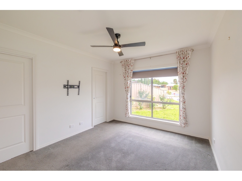 A large home located in a quiet court location. Master bedroom boasts two walk-in robes and ensuite, with built in robes to remaining two bedrooms. All bedrooms have ceiling fans and reverse cycle ducts. The home has an open plan kitchen/dining/living space with gas cooking, walk in pantry and a dishwasher. There is ample living space with the double garage being converted into a large second living room. Outdoors you will find an undercover area, large yard with potential and a garden shed. The property also has a double carport with roller door. The home will be comfortable all year round with ducted reverse cycle.
