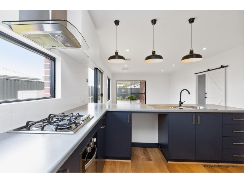 Looking for a large family-style home with all the modern perks? This beautifully presented 4-bedroom, 2-bathroom home offers the perfect balance of space, comfort, and convenience — ideally located close to Wellard Village Shopping Precinct, the train station, schools, and local amenities. Step inside and enjoy multiple living areas, modern finishes, and thoughtful design throughout. The kitchen features upper cabinets, a gas cooktop, and a walk-in pantry, while the open-plan living area flows seamlessly to the alfresco — perfect for entertaining. The main bedroom boasts double walk-in robes, and all bedrooms include built-in storage. Outside, enjoy a fully fenced yard with a small garden shed, veggie patch, and alfresco area for year-round enjoyment. Property Features: - 4 spacious bedrooms (main with double walk-in robes) - 2 modern bathrooms, 2 toilets - Ducted air conditioning throughout - Stylish modern fixtures and fittings - Kitchen with walk-in pantry, upper cabinets, and gas cooktop - Internal laundry with storage - Barn door dividing rear section for privacy - Fully fenced backyard with alfresco area - Small garden shed and veggie patch - Double garage with side gate access to the rear This stunning home ticks all the boxes for modern family living — space, style, and location. Don’t miss out on making it yours!