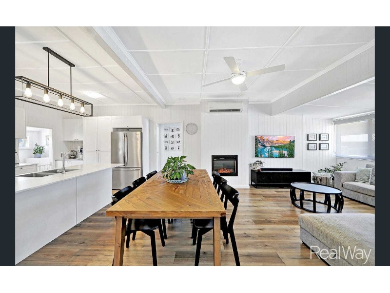This beautifully renovated Queenslander offers the perfect blend of traditional character and modern comfort. Stylish on the inside and full of charm on the outside, this home is ready for you to move in and enjoy. Featuring a complete transformation, this spacious 4-bedroom home is ideal for families seeking comfort, convenience, and timeless appeal, all in a great location close to shops, schools, and local amenities. Property Features: -4 generous bedrooms with built-in robes, ceiling fans, and security screens -Open-plan living and dining area with air conditioning and a decorative fireplace -Modern kitchen with ample storage, dishwasher, large oven, and 6-burner gas cooktop -Central breakfast bar, perfect for casual meals or entertaining guests -Study nook/home office space for remote work or study -Stylish main bathroom with large walk-in shower and freestanding bathtub -Internal laundry with additional toilet at the rear -Fully fenced 809 sqm yard – safe for kids and pets -Landscaped backyard featuring a decked entertainment area -Single garage with rear access and additional space suitable for a workshop or storage -Roof replaced approx. 4 years ago; concrete stumps for peace of mind Conveniently located close to Sugarland Shopping Complex, Salters Oval, Shalom College, and the Multiplex, this property offers easy access to everything you need.