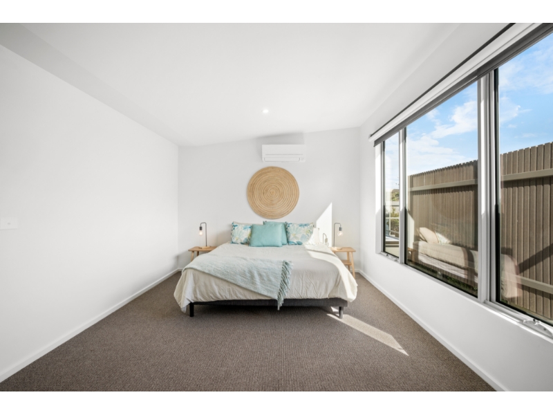 Located directly opposite Fisherman's Beach and just moments from Torquay’s cafés, restaurants, and shops, this three-bedroom furnished home offers relaxed coastal living with modern style. Upstairs features a bright open-plan living and dining area with raked ceilings, electric fireplace, and access to a spacious terrace. The stylish kitchen includes stone benchtops, induction cooktop, integrated fridge/freezer, and plenty of storage. The large main bedroom features a walk-in robe, and access to a two-way bathroom with a freestanding bath. Downstairs are two more bedrooms with built-in robes, a second bathroom, and a second living area – perfect for guests or a home office. Extra features include, reverse-cycle heating and cooling, a European laundry, outdoor shower, and a carport with wash trough – ideal after a day at the beach. Enjoy the best of the Surf Coast with beaches, walking tracks, golf courses, and plenty more close by.