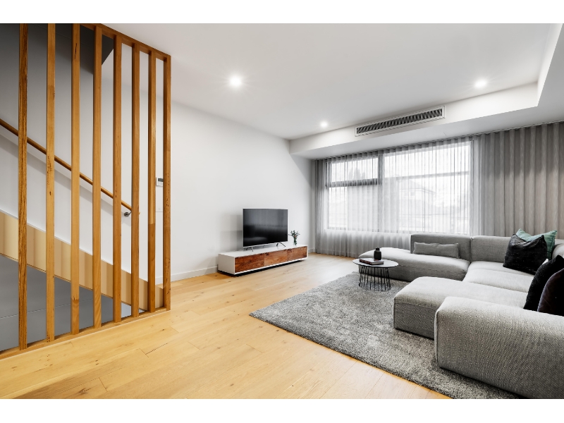 Tucked away on a quiet, tree-lined street in the heart of Brunswick, this sophisticated residence offers a rare fusion of historic charm, refined luxury, and sustainable living. This striking three-level town home has been crafted for those who appreciate contemporary design, privacy, and elevated comfort. A welcoming ground-floor entrance sets the tone, leading to a beautifully appointed bedroom featuring a walk-in robe and a luxurious ensuite, ideal for guests or the master bedroom suite. This level is complemented by a spacious garage with generous storage, enhancing everyday convenience. Ascending to the main living level, the home reveals an elegant dining space that flows seamlessly onto an entertainer’s balcony, creating the perfect setting for hosting or unwinding. The sleek, designer kitchen commands attention as the centrepiece of the home, showcasing premium finishes and quality appliances, while a separate living area provides a refined retreat for relaxed living. The upper level continues the sense of luxury with two additional bedrooms, including a master suite complete with a private ensuite. A stylish central bathroom services the floor, along with a versatile fourth bedroom or large study that opens onto its own private balcony, offering an intimate space for a home office, retreat, or guest room. Set moments from Brunswick’s renowned cafés, dining, and transport options, this exclusive townhouse delivers an enviable lifestyle defined by elegance, space, and modern sophistication. Please note: Hardy Street can be accessed via Albion Street or Mountfield Streets, Brunswick.