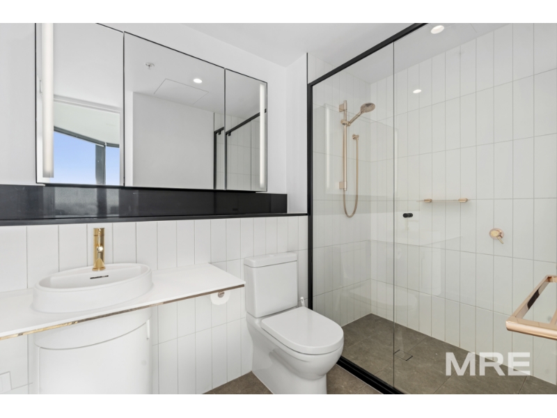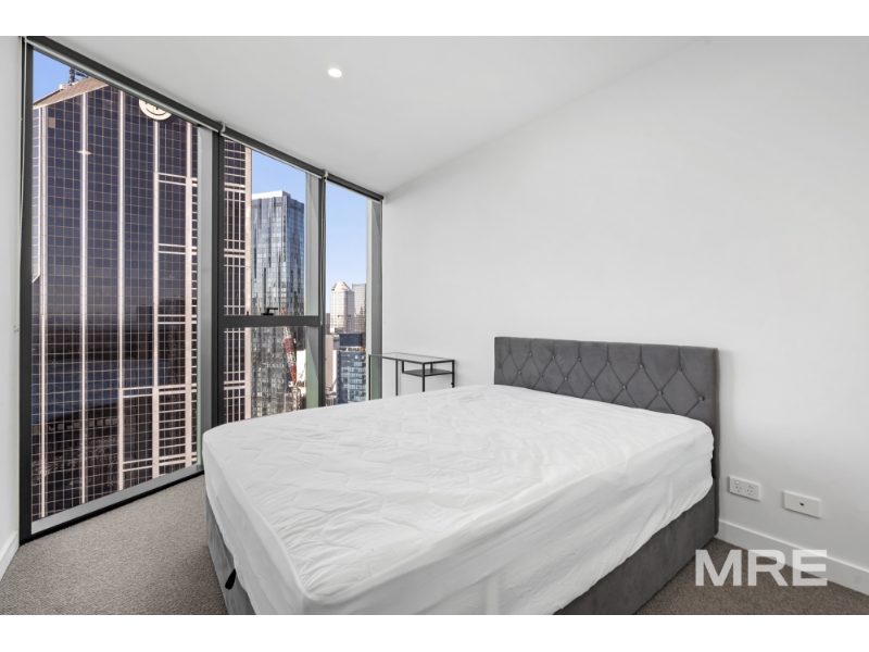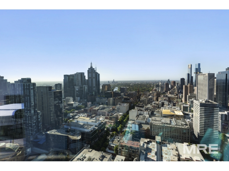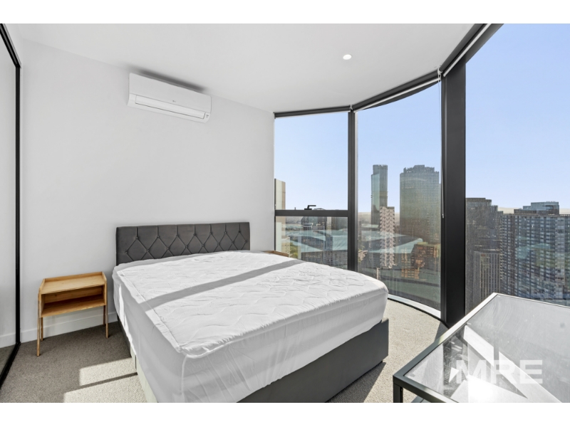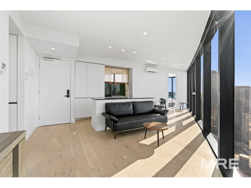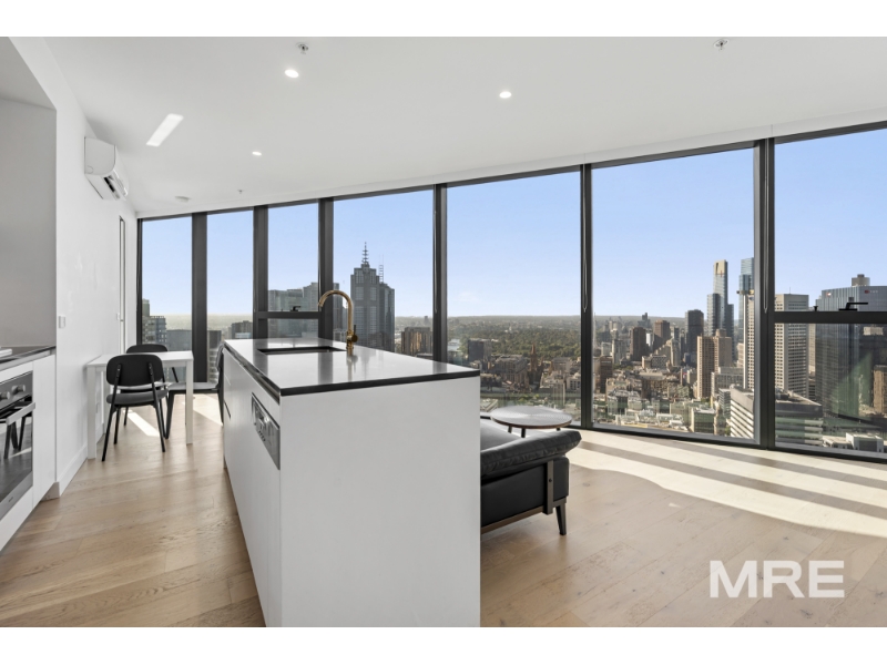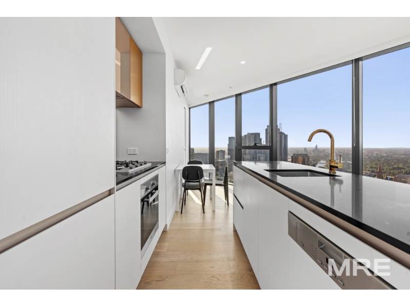 A stunning furnished residence flooded with northern light, this beautifully designed apartment offers elevated city living with panoramic views through floor-to-ceiling glass. The open-plan living and dining zone captures breathtaking CBD vistas and flows effortlessly to a sleek stone kitchen with island bench and premium finishes, ideal for both everyday living and entertaining. Both bedrooms are generously sized and feature built-in robes and beds with excellent storage, including a main suite with a stylish ensuite, while the second bedroom is serviced by a modern central bathroom. Quality finishes, timber tones and thoughtful design details are evident throughout, complemented by climate control, integrated laundry and an off street car space. Filtered water taps are available throughout the building, adding an extra layer of everyday convenience. Residents also enjoy access to an impressive suite of resort-style amenities including a swimming pool, sauna, fully equipped gym and BBQ facilities, with exclusive Level 61 spaces featuring a business centre and elegant resident lounges, perfect for work, relaxation or entertaining. Perfectly positioned on La Trobe Street, enjoy immediate access to Melbourne Central, Flagstaff Gardens, Queen Victoria Market, transport, dining and universities, delivering a refined and convenient inner-city lifestyle.
