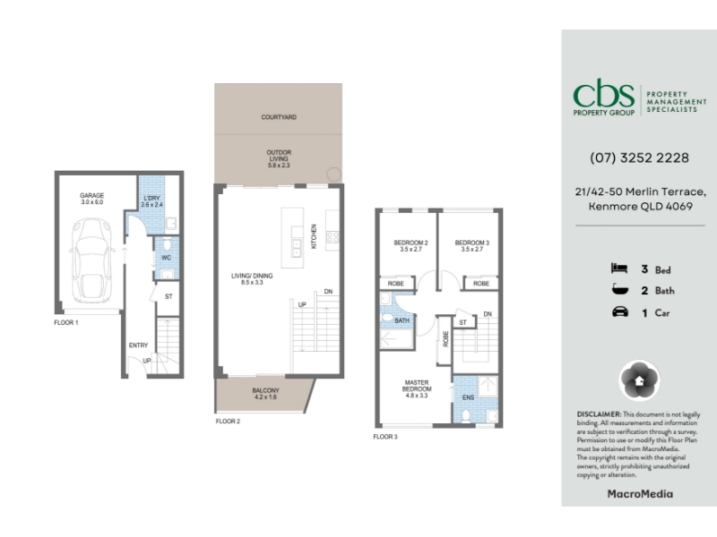 Positioned within the sought-after Hyde Park Residences, this well-designed townhouse offers a modern, low-maintenance lifestyle in one of Kenmore’s most convenient and elevated locations, just 11km from the Brisbane CBD. Set across three levels, the home is thoughtfully designed to provide both space and separation. The central level features a light-filled open-plan living and dining area, flowing seamlessly to both a private balcony and rear courtyard, creating multiple options for outdoor living and entertaining. The kitchen is centrally positioned and well-appointed with stone benchtops, quality appliances, ample storage and a functional island bench, making it practical for everyday living. Upstairs, three well-sized bedrooms are positioned for privacy. The master bedroom includes a walk-in robe and private ensuite, while the remaining bedrooms are fitted with built-in wardrobes and serviced by a modern main bathroom. Additional features include air-conditioning, internal laundry, a separate powder room, and a secure single garage with internal access. Property Features: • 3 bedrooms with built-in wardrobes • Master bedroom with walk-in robe and ensuite • Open-plan living and dining area • Well-appointed kitchen with stone benchtops and island • Private balcony and rear courtyard • Air-conditioning throughout • Internal laundry and additional powder room • Single remote garage with internal access Residents of Hyde Park Residences enjoy access to landscaped communal green spaces, all within walking distance to Kenmore Village, Kenmore Plaza, local cafes, restaurants and public transport.