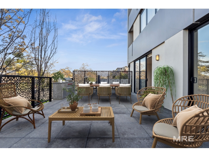 Set within the exclusive One Seven development, this ground-floor apartment blends designer finishes with generous indoor-outdoor living, featuring a rare oversized courtyard ideal for entertaining, relaxing, or simply enjoying the extra space. Timber floors, soft earthy tones and full-height windows enhance the open-plan living and dining zone, which connects seamlessly to the expansive outdoor area. The bespoke kitchen impresses with stone benchtops and premium appliances, offering both style and functionality. Two robed bedrooms include a main with a sleek private ensuite, while a dedicated study nook adds flexibility for work-from-home or quiet retreat. A deluxe central bathroom, split system heating and cooling, off street car space and video intercom round out this quality offering. Located in one of Melbourne's most sought-after suburbs, just a short stroll to Fairview Park and the Yarra River, and only moments to the 75 tram with direct access into Richmond and the CBD. Booking an inspection is easy! Simply click on "Request a Time" to register your details for an inspection time that suits you. Alternatively, "Get in Touch" with our Livability Agents to enquire today, we look forward to meeting you soon. By registering, you will be instantly informed of any updates, changes, or cancellations to your appointment. Applications are processed after inspections have been completed.