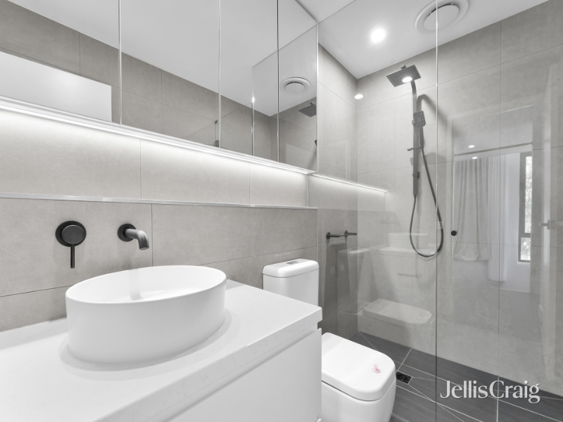 Jellis Craig Monash is proud to present this stylish modern apartment which offers an inviting blend of light filled living and elevated views. The open plan design combines kitchen, dining and living spaces surrounded by full-height windows that fill the home with natural light. Timber flooring adds warmth throughout the main living area, complemented by split-system heating and cooling for year-round comfort. The sleek kitchen features stone benchtops, gas cooktop, integrated oven, breakfast bar and ample soft-close storage finished with matte black tapware. Located close to Westfield Doncaster, Tunstall Square, Jackson Court, cafés and restaurants, and easy access to multiple bus routes, Eastern Freeway and Park & Ride. Zoned for East Doncaster Secondary College and Donburn Primary School, near Ruffey Lake Park and Schramms Reserve. Consisting of: • Master bedroom with mirrored built-in robes and a full ensuite • Second bedroom with built-in robe, split-system and leafy outlook • Open-plan living and dining area with timber flooring • Modern kitchen with stone benchtops, gas cooktop, integrated oven and breakfast bar • Main bathroom with a walk-in rainfall shower, a stone vanity and mirrored cabinetry • Concealed laundry within cabinetry Featuring: • Split-system heating and cooling throughout • Secure intercom entry, lift access and basement parking (1 car) • Storage cage in the basement • Full-height windows providing abundant natural light and elevated views • Gas included in the rent To book an Inspection for this property, please click either the “Book Inspection” or “Email Agent” button, and you will be advised of any inspection times we have available, or you will be given the option to register your interest for future inspections if there are no times currently available. Please note you must register to attend our weekday inspections. If you have not pre-registered for an inspection prior to the inspection time, you will not be notified of any changes or cancellations of the inspection time or date. DISCLAIMER: Every effort is made to ensure that all of the information provided in this advertisement is accurate. Photo ID required at all inspections.