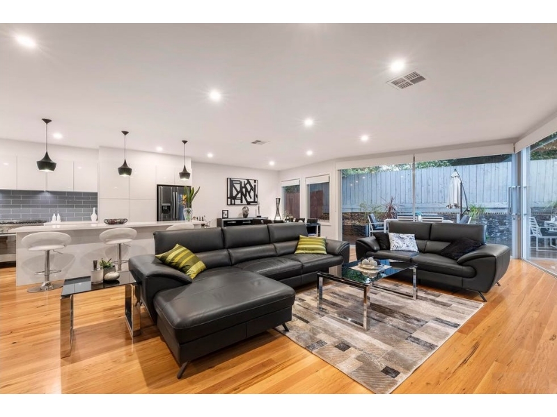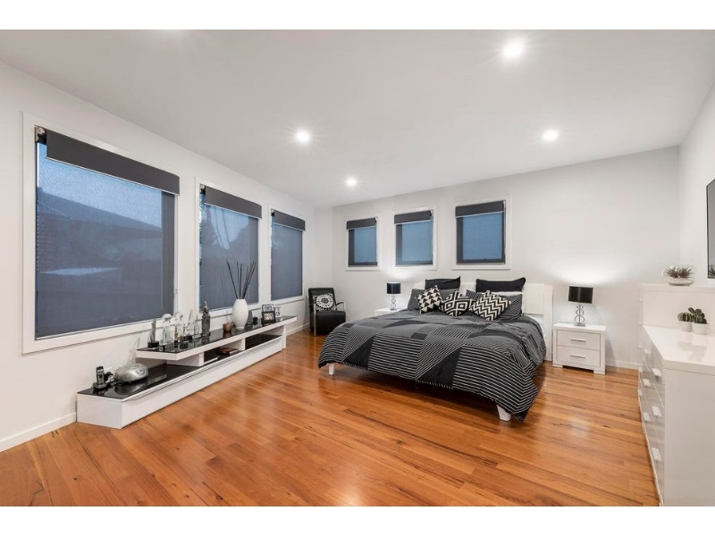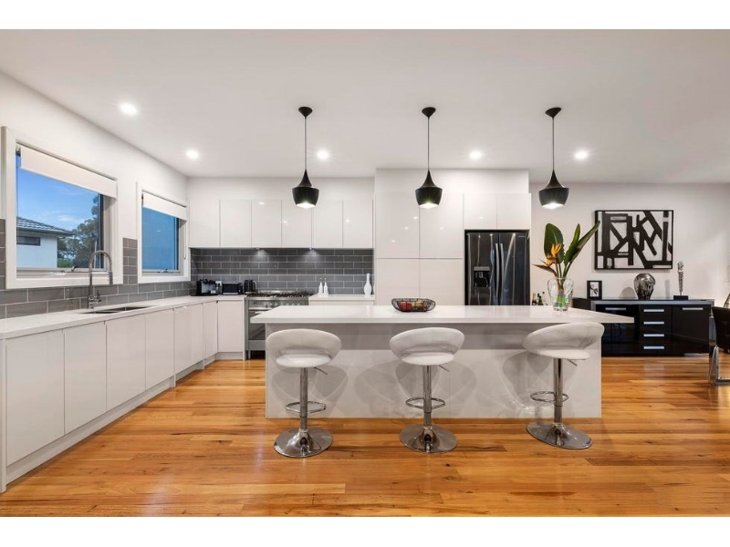 This exceptional, expansive, and enticing family residence is an achievement in architectural design. Focused on family comfort, complete with options for multi-generational living, this property is defined by its ability to evolve with a family’s needs. At the heart of this home, north-facing open plan living encourages gathering and entertaining in style. Beautiful wrap-around windows feature views of the deck and garden and Blackbutt timber floors seamlessly connect the family room, meals area, and gourmet kitchen with stone benchtops, freestanding gas range, sleek white cabinetry, and stylish subway tiles. For additional living space, the upper level lounge with private balcony is a brilliant inclusion for bourgeoning families. For ultimate versatility, architects have used professional precision to provide a clever bedroom configuration. Both levels boast luxurious main bedrooms with spectacular ensuites and walk-in robes, while the 2 generous family bedrooms share a superb Jack-and-Jill bathroom. With the inclusion of a ground floor guest powder room, this is a high-spec residence that showcases superior design. Additional features include zoned ducted heating and refrigerated cooling, oversize double garage with automatic timber door, and an exclusive position near the Eastern Freeway, Koonung Creek Trail, Devon Plaza, Westfield Doncaster, Beverley Hills Primary School, and Doncaster Secondary College. Inspection will impress.