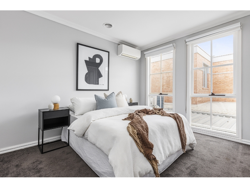 Serenely positioned in a leafy, lifestyle-focussed neighbourhood, edged by the lush expanses of Landcox Park, this elegant three-bedroom plus study or 4th bedroom, Brighton East home will delight with its impressively appointed, character-rich interiors and spacious highly considered floorplan designed to celebrate light-filled liveability and low-maintenance family functionality. Securely set behind high walls, an ironwork gate and manicured, low-maintenance front gardens, the north facing double-storey rendered brick residence presents plenty of refined classical street appeal. Inside, wide-format timber flooring flows through the generously proportioned entry hall, formal living room, study (or fourth bedroom) and light-filled open plan living/dining space that features a curved wall of floor-to-ceiling glass and French doors to the private alfresco courtyard. The central gourmet stone kitchen is well-equipped with Fisher & Paykel appliances including a gas cook top, convection oven, and dishwasher, while a large laundry has mud-room functionality with ample storage and dual access doors from the garage and the courtyard. A powder room, and an abundance of storage including an under-stair walk-in space, complete the ground floor layout. Newly carpeted, the upper level comprises a landing retreat (or study space), a stylish floor-to-ceiling tiled bathroom with built-in tub and dual head shower, and two good-sized bedrooms with built-in robes. North facing with leafy outlooks and an elegant arched window, the main bedroom suite incorporates a fitted walk-in robe and a luxe shower ensuite. Additional features include plantation shutters on all north facing windows, individual room split system heating/cooling, video intercom, keyless entry, a remote-operated garage and off-street parking place. A verdant short-cut through Landcox Park will have you enjoying the boutiques and eateries of Bay Street or arriving at North Brighton station within a 10 minute walk, plus there is a choice of excellent local cafes, including Café Bliss, even closer by. In the coveted Gardenvale Primary School zone, the home is also in walking/cycling distance to Brighton Secondary College, Brighton Grammar and Firbank Grammar and city-bound Hawthorn Road trams are also within easy reach. Please click ‘Book Inspection’ or ‘Email Agent’ to register for the inspection. Open for inspections and property availability are subject to change and cancellations, registering your details will ensure you are immediately notified via SMS of any changes or cancellations to inspection times.