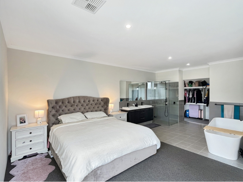 51 Leighfield Road, Hilbert This beautifully designed near-new home offers generous proportions, modern finishes and a unique master suite layout that truly sets it apart. Thoughtfully built for space, comfort and functionality, this home provides multiple living zones and quality inclusions, making it ideal for families who love to entertain while enjoying low-maintenance living in a growing Hilbert community. Features include: • Four spacious bedrooms • Master suite with open-plan ensuite featuring a stunning freestanding bath • Three double-sized minor bedrooms with built-in wardrobes • Separate main bathroom with separate toilet • Separate theatre room • Large open plan living and dining area perfect for entertaining • Contemporary kitchen with butler’s pantry providing additional storage and preparation space • Ducted air-conditioning throughout for year-round comfort • Plantation shutters to master and side bedroom for added privacy and cooling • Low maintenance outdoor areas • Monthly garden service included in the rent Solar panels to assist with energy efficiency Location Highlights: • Located in a growing and family-friendly Hilbert community • Close to local parks and walking trails • Easy access to Tonkin Highway • Short drive to Armadale Shopping Centre • Close proximity to local primary schools and childcare centres • Nearby secondary schooling options • Convenient access to public transport This home was specially designed for space, comfort and easy living, and it won’t be available for long!