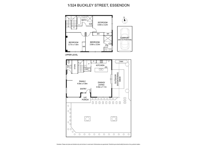 Beautifully appointed and filled with natural light, this near new townhouse presents an exceptional opportunity in a boutique, low-maintenance setting on the edge of Aberfeldie. Designed with quality and style in mind, the vogue interior comprises three generous bedrooms, all fitted with mirrored robes, complemented by a luxurious ensuite, a central bathroom and a convenient guest powder room, each showcasing premium fittings and striking floor to ceiling tiles. The spacious open-plan living and dining domain offers an inviting space to relax or entertain, seamlessly connected to a sleek stone-topped kitchen featuring mosaic-tiled splashbacks, stainless steel appliances and a well-appointed butler’s pantry. Additional highlights include ducted heating and refrigerated cooling for year-round comfort, polished concrete floors, custom lighting, soft-close cabinetry, alarm security and video intercom, along with a European laundry for added practicality. Outdoors, enjoy a private courtyard with decking, a sizeable front garden and a secure carport with remote-controlled panel door accessed via ROW. Positioned for lifestyle ease, you’ll find popular shops and trendy cafés virtually at your doorstep, local bus services along Buckley Street, convenient access to Essendon Station, nearby riverside parks and trails, and the area’s highly regarded schools all within easy reach.