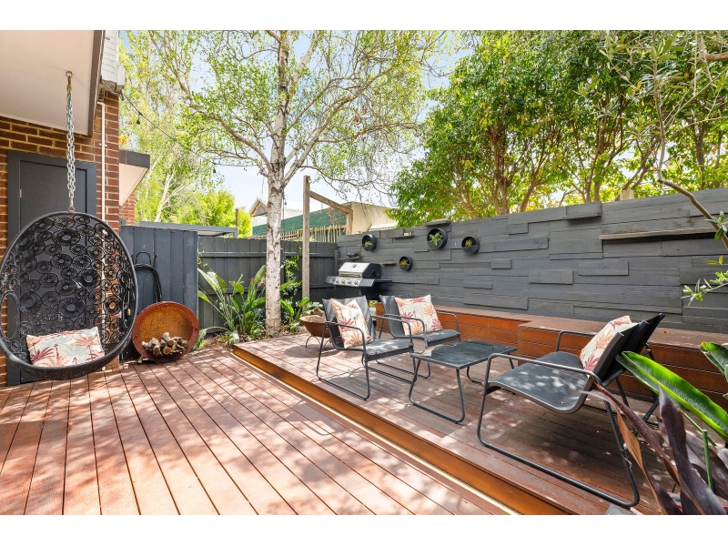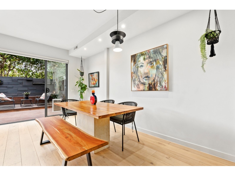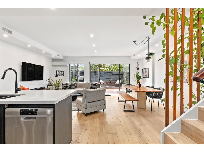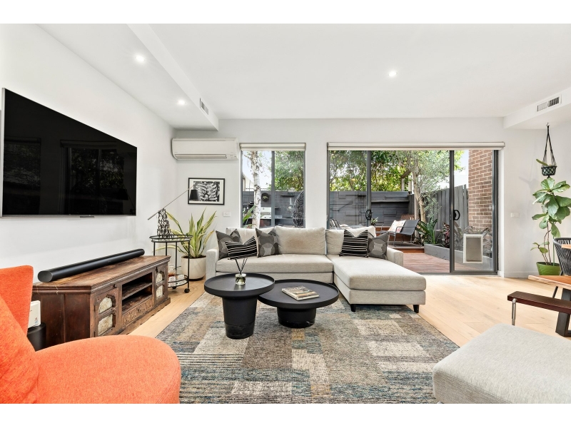 Tucked privately at the very rear of an exclusive boutique complex, this beautifully renovated two-storey townhouse delivers an outstanding combination of style, space and lifestyle convenience. Securely set back from the street with dual access via Brighton Road and Albion Street, the home enjoys peace, privacy and the reassurance of gated entry within a well-maintained contemporary setting. Designed for modern living, the interiors reveal a light-filled layout complemented by a refined neutral palette and warm timber flooring. The generous north-facing open-plan living and dining domain forms the social heart of the home, creating an inviting environment for everyday living and entertaining while seamlessly extending to the private rear courtyard. Framed by established greenery, the expansive alfresco deck offers a tranquil setting for outdoor dining, relaxed afternoons and summer gatherings, enhancing the home’s exceptional indoor–outdoor connection. Overlooking the living zone, the kitchen is both stylish and highly functional. The island bench doubles as a breakfast bar and central gathering point, while stone benchtops, quality stainless-steel appliances, gas cooking and ample cabinetry ensure effortless meal preparation. A separate laundry and convenient powder room complete the ground floor. Upstairs, a versatile second living area provides valuable flexibility as a family retreat, study zone or home office. The main bedroom offers a peaceful sanctuary featuring a private balcony, walk-in robe, ensuite and split-system heating and cooling. Two further bedrooms, each with built-in robes, are serviced by a well-appointed central bathroom with shower over bath. Additional highlights include ducted heating, split-system heating and cooling, double undercover parking and a storage shed. Perfectly positioned to enjoy the very best of bayside and inner-city living, across the road from Alex cafe and The Dispensing cafe for a delicious latte and brunch while moments from the vibrant cafés, restaurants and boutiques of Carlisle Street & Acland Street, with easy access to Ripponlea Village, Elwood Beach and St Kilda Botanical Gardens. Excellent public transport options, including city-bound trams, Balaclava and Ripponlea Stations, are within walking distance, while surrounding parklands and respected local schools further enhance the lifestyle appeal of this exceptional address.
