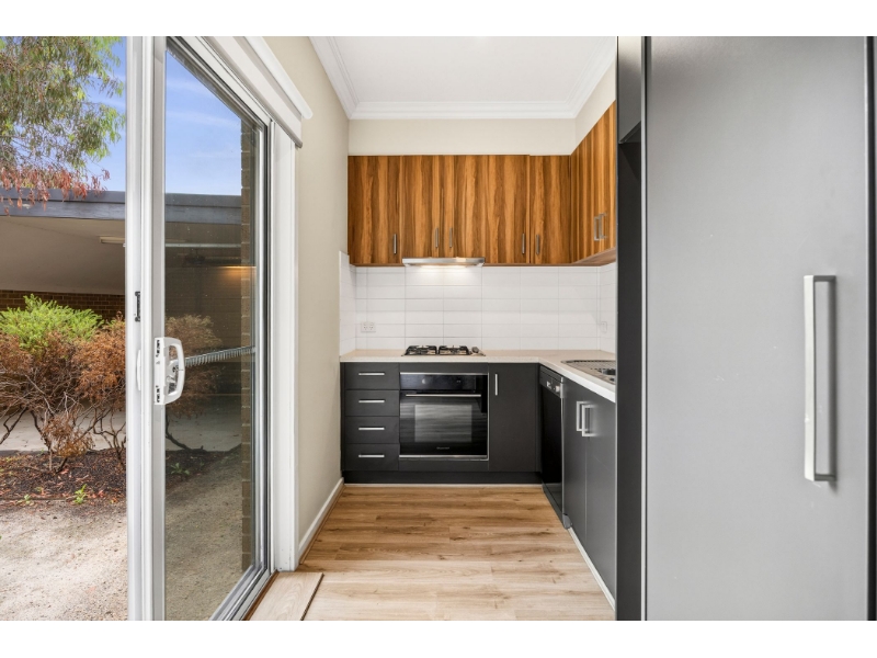 Positioned in a quiet, tree-lined street, this contemporary townhouse makes an immediate impression, proudly set at the front of an exclusive block of just four. Designed with modern living in mind, the home is bathed in natural light, with a practical and flexible floorplan ideal for busy professionals or those seeking low-maintenance comfort. The welcoming entry leads to a spacious, sun-filled lounge that seamlessly connects to a sleek gallery-style kitchen, complete with gas cooking, electric oven and dishwasher. Both living zones enjoy direct access to the private, secure rear yard-perfect for relaxing or entertaining. The versatile lower level also offers a generously sized bedroom or second living space, along with a convenient European laundry. Upstairs, the light-filled primary suite features built-in robes and a private ensuite, while the second bedroom is equally well-proportioned with built-in robes. A central bathroom with shower, bath, vanity and toilet services the upper level with ease. Outdoors, the double carport provides secure off-street parking for two vehicles or doubles as an undercover entertaining area. Finished in soft neutral tones throughout, this home presents a beautiful blank canvas ready to make your own. Additional features include split system heating and cooling across both levels, ensuring year-round comfort. A stylish and low-maintenance lifestyle opportunity in a peaceful, well-connected location.