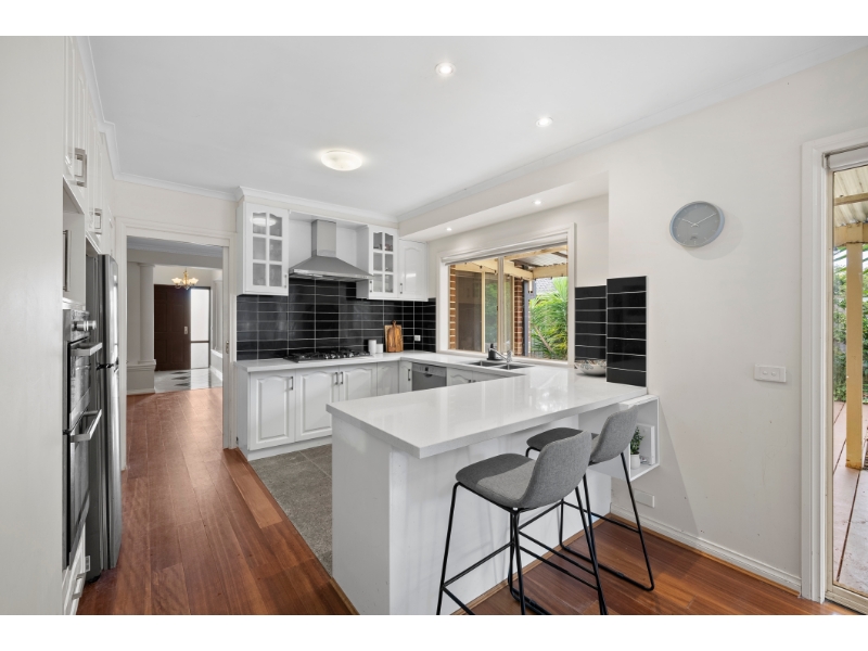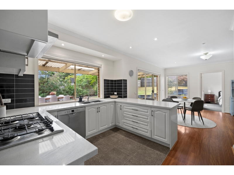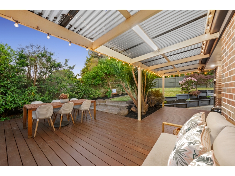 Set proudly on an expansive 874sqm approx, this freshly painted home offers an immediate sense of warmth, elevation and space. From the upgraded front garden and lush lawn to the spiral steps and charming verandah, the home makes a standout first impression and feels welcoming from the very first step, relaxed, light-filled and designed for everyday family living. Inside, a spacious living and dining domain sits on entry, enhanced by a bay window that captures stunning elevated views and fills the space with natural light. The central kitchen anchors the home with stone benchtops, a breakfast bar, feature splashback tiling, quality appliances and excellent storage, flowing seamlessly into the open-plan family and meals area. Sliding doors extend the living outdoors to a huge entertaining deck, overlooking a lush, well-maintained backyard framed by established garden beds. Accommodation is thoughtfully zoned for privacy, with three bedrooms and two elegant bathrooms. The main bedroom is positioned quietly to the rear, complete with a walk-in robe and luxurious ensuite featuring floor-to-ceiling tiles and tranquil garden outlooks. Two further bedrooms include built-in robes and are serviced by a central bathroom with a separate shower and bath, finished in a refined, timeless style. With ducted heating, evaporative cooling and a large double lock-up garage with internal access and storage, the home is ideally located close to Chirnside Park Shopping Centre, Lilydale Lake, Gardiners Run Golf Course and is zoned for Lilydale Heights College and Chirnside Park Primary School.
