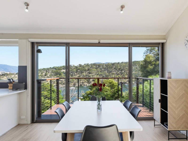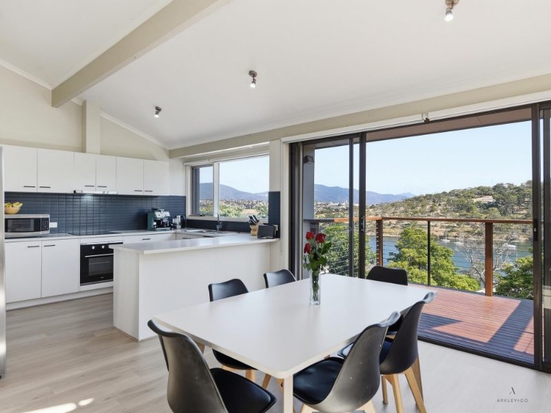 This spacious family home is situated in popular Geilston Bay with great views of the Derwent River and beyond. The upper level has been designed to maximise space with an open plan kitchen, dining and living area flowing seamlessly to the timber deck via large sliding doors. Whether hosting friends or enjoying a quiet morning coffee, the ever-changing river backdrop creates a remarkable sense of space and tranquillity. The kitchen is generous and highly functional, offering ample bench space, quality appliances and a long breakfast bar perfect for casual meals. Wide windows above the sink ensure the view remains a constant feature. Warm timber flooring and exposed beams introduce character while maintaining a clean, modern aesthetic. Also on this level, the main bedroom is a true retreat, showcasing expansive glazing with stunning water views, a substantial walk-in robe and an adjacent dressing room. If desired this space can also be used for separate home office or study providing flexibility for those working remotely or needing a quiet space away from the main living areas. Downstairs, the layout continues to impress with a separate rumpus or second living area, ideal for growing families seeking additional room to spread out. Adjacent to this space is a bedroom complete with built-in robes and its own ensuite, creating a perfect zone for visiting guests, teenagers or extended family who appreciate privacy and independence. The family bathroom is sleek and contemporary, featuring a glass walk-in shower. Outdoors, the property offers more than just views. The rear garden provides a generous, level lawn area ideal for children and pets, as well as space for entertaining. With direct and easy access to the Natone Hill walking tracks, this setting will appeal to those who value an active lifestyle and connection to nature. Secure parking and additional storage add further practicality, while the overall position ensures convenient access to local parks, schools, shopping amenities and a straightforward commute into Hobart's CBD.