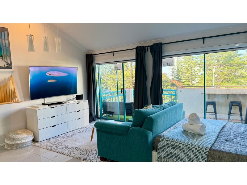 The Phone Code for this property is: 37151. Please quote this number when phoning or texting. Please submit an enquiry to receive a link to the Application Form. Immaculately presented self-contained studio penthouse available for rent for 6 months. This unique studio penthouse has a style all of its own! The home features a relaxing lounge area with a super comfy sofa bed to enjoy a good book or binge your favourite TV shows on Netflix and internet - paid by the owner. Air-conditioning and a ceiling fan provide all year comfort. Enjoy the home comforts of a Queen size bed, ample storage, fully equipped open plan kitchen with central bench island (on wheels), separate bathroom that includes full laundry facilities, a large private balcony with stylish outdoor furniture that invites you to sit back, relax and enjoy the park views. Secure basement parking for one vehicle. The apartment is perfectly located in the heart of Broadbeach for that fun filled Gold Coast living. Aruba Resort is on the corner of Surf Parade & Queensland Avenue where you can enjoy the resort facilities such as pool, hot tub and BBQ surrounded by beautiful gardens. The resort is a short stroll to cafes, restaurants and the beautiful Kurrawa Beach and Surf Club, Pacific Fair Shopping Centre & bus stop, and the Gold Coast Convention and Exhibition Centre. Public transport is easily accessible and includes the G:link light rail. Gold Coast Airport is approx. 25 minutes away.