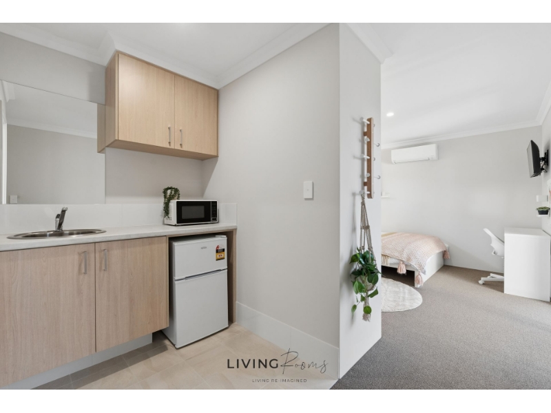 Looking for a clean, modern private space? • Studio-style room with ensuite and kitchenette in a newly built and secure co-living home with 6 rooms —all ensuite. • Located on Garrard Pde, TWO ROCKS – quiet, safe neighborhood just 8 minutes from the bus stop. Location Highlights: • 8 mins walk to the nearest bus stop • 57 mins to Perth CBD • 60 mins to Perth Airport • 4 mins to IGA Two Rocks • 34 mins to Edith Cowan University Your room includes: • Queen bed, built-in mirrored wardrobe • Ensuite bathroom, split AC • Kitchenette with fridge, microwave, kettle, toaster • TV, storage bench, desk and chair • Secure touchpad lock Shared amenities: • Fully equipped kitchen with fridge/freezer and dining area • Laundry with 2x washing machine and ironing facilities • Alfresco patio Rent: $295/week (single occupancy) • A garage space is available for an additional $10 per week • $25 per week bill allocation (Wi-Fi, water, electricity) • Fortnightly cleaning of295 shared areas • Includes basic consumables • 4-weeks security deposit + 2 weeks' rent in advance • 18+ only I Viewing required *** Not the whole house — private room in a shared home. *** Send us a message to book your viewing today! More options at: www. livingrooms .com.au