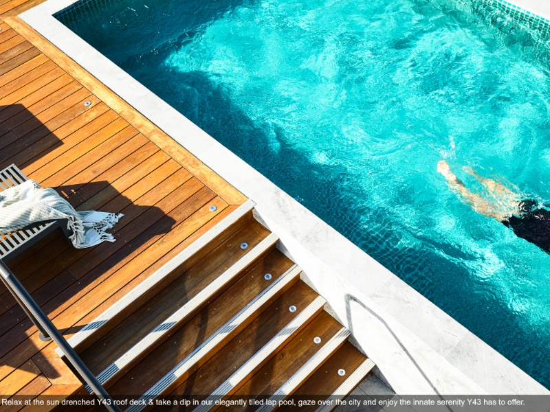 Residents of Y43 enjoy exclusive access to a rooftop pool and sundeck with spectacular views. A promise of beautiful living, 804 is a spacious well-designed 2 bedroom apartment featuring large living area, ensuites, separate study space and walk-in-robe. Connected to the NBN and supported by onsite property management, Y43 delivers a luxurious, modern lifestyle. APARTMENT FEATURES 1. Spacious 95m² open plan living 2. Large balcony with a stunning Teneriffe Hill view 3. Master bedroom with walk-in-robe & ensuite 4. Beautifully appointed main bathroom with bath tub 5. Modern Kitchen with full height pantry and plenty of storage 6. European stainless steel appliances including dishwasher, gas cook top, electric oven and range hood 7. Stone bench tops in kitchen and bathrooms 8. Separate study space 9. Separate internal laundry with dryer 10. Daiken air conditioning to living and bedrooms 11. Secure undercover parking (extra storage options available) 12. High Speed Internet – NBN ready 13. Audio intercom system 14. Pre-cabled for Foxtel, Free-to-Air TV and phone BUILDING AND AMENTITIES 1. Stunning Rooftop Pool & Sun Deck 2. Boutique building, 9 levels with only 52 apartments 3. Pet friendly 4. Superior on site management 5. Private and secure basement parking for residents and visitors 6. Extra storage and parking space available 7. Swipe access with intercom and CCTV security 8. Views to Teneriffe Hill 9. Concierge Services Available Location - Top Ten: 1. 70m Teneriffe bus / Ferry Terminal / Newstead boardwalk 2. 100m Newstead River Park and Lake and CityCycle 3. 300m Gasworks Plaza including a full line Woolworths, fresh food markets, pharmacy, specialty shops, restaurants and cafes 4. 650m Emporium Hotel and Shopping Precinct 5. 750m James Street Precinct 6. 1500m Bowen Hills Train Station 7. 1700m Brisbane CBD 8. 2200m Famous New Farm Park 9. 19mins to Brisbane Airport ($25-$32 Uber ride) 10. 1300m – Howard Smith Wharves Restaurants and Bars – Greca / Yoko Dining / Stanley / Felons Brewing Co.
