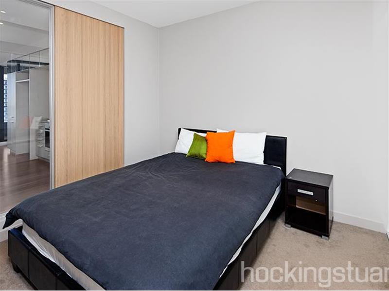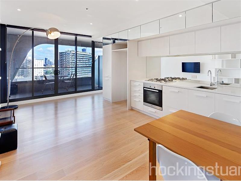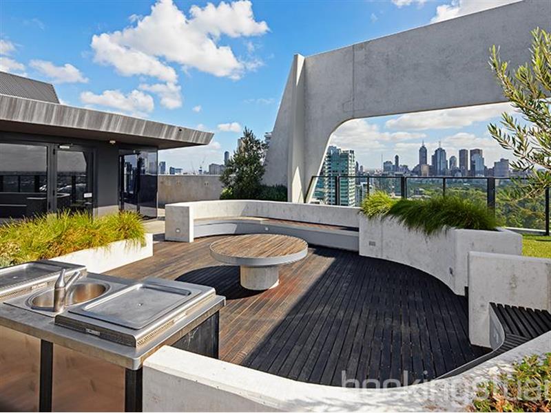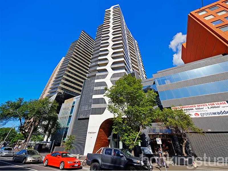 **Registration for inspections are essential!** With stunning contemporary flair and an air of luxurious comfort, this superb one-bedroom apartment is in a class of its own. It is situated in the 'Albert Tower' complex, an architectural award-winning development known for its iconic facade. The apartment showcases a sparkling kitchen and large entertainers terrace with a breathtaking outlook. The kitchen comes with a stone bench top, mirrored splash back, Miele stainless steel appliances, including a gas cook-top and a dishwasher. The air-conditioned living spaces are well designed and light filled with glass sliding doors opening to a spacious balcony with an amazing view. The bedroom boasts ample cupboard space and is serviced by a stunning bathroom that is designed to not only impress the eye, but to be a functional space. State-of-the-art resort style facilities are an added luxury, offering residents exclusive access to the gym, sauna, resident lounge and dining room, and a lavish rooftop garden with an entertainment deck that offers a panoramic view of Melbourne, Albert Park lake and Port Philip bay. Other features include: heating/cooling and security entrance.