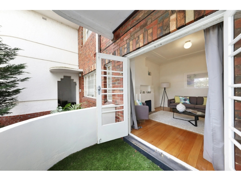 Secreted away within landmark Art-Deco surroundings opposite Connell Park, this ground-floor two bedroom apartment maintains the classic art-deco style. Walking distance to iconic shopping district of Greville St and Prahran Market, and an easy commute to the city with trams and trains. The Alfred Hospital, Fawkner Park and Albert Park Lake in the vicinity. Retaining original features and a great period feel including polished timber flooring, tall decorative ceilings, this apartment also features quaint living room opening via French doors to a curved alfresco patio setting; large master bedroom with built in robes; second smaller bedroom perfect as a guest bedroom or study; separate kitchen with built in dining nook ; central bathroom with shower over bath, and garage. Shared entry with one other apartment only, this apartment is further enhanced by easy walking distance to Greville Street's cafes and nightlife, Prahran Market, Arranging an inspection is easy! Where there are no set advertised inspections, click on "Book Inspection" and select your preferred time. Please ensure that you register for all inspections. If you do not register, the inspection may not be confirmed. By registering you will be automatically advised of any changes, updates, cancellations or future inspections.