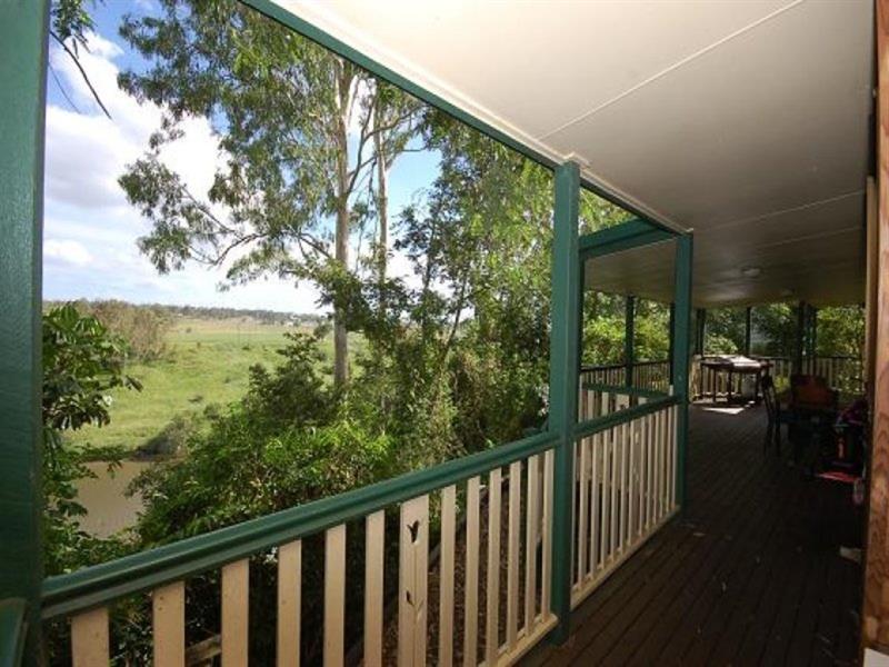 Wonderful views of the Brisbane River and farmlands beyond (well above the flood level) make this a unique and special place to call home. IN SHORT neat and sturdy brick and tile home 4 bedrooms 1 bathroom, separate WC, separate laundry living dining kitchen open to spacious deck covered deck full house length uninterrupted river views cul de sac position school buses at end of street IN DETAIL - 1730 sq metre block enjoys absolute river frontage with riparian rights and home site is well above flood level - situated at top of cul de sac, privacy is assured - lounge area flows through to dining space off neat and compact kitchen - 4 bedrooms are all light and airy, 2 open onto deck through sliding glass doors - single bathroom, separate loo, independent laundry - generous covered deck runs full length of the house and looks out over the river to farmland opposite - this river stretch is canoe trail and fish breeding grounds so no speed boats or jetskis will spoil your tranquillity - single carport has area for bikes or trailer - garden shed at the side - walk to parkland and shops - easy commuting time of 30 mins to Brisbane CBD or 15 mins to Amberley Base